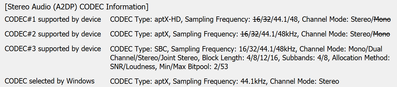 Полноценный мультипойнт гарнитура не поддерживает, зато есть очень удобная и корректно работающая функция переключения между двумя источниками по двойному нажатию кнопки на оголовье. В ходе тестов мы подключали OnePlus Bullets Wireless 2 к Android-смартфону и ПК под управлением Windows 10, после чего без проблем меняли источник по несколько раз в течение дня. Параллельно с помощью утилиты Bluetooth Tweaker был получен полный список поддерживаемых кодеков и их режимов.