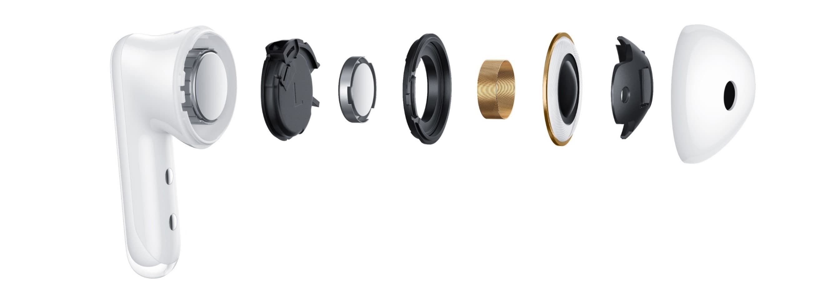 Ну и скажем буквально пару слов про внутреннее устройство Oppo Enco Air3. В описании от производителя есть информация о том, что используется нехарактерно крупные и «продвинутые» для TWS-гарнитур среднего ценового сегмента драйверы диаметром 13,4 мм, которые могут похвастаться диффузором из полимерного композита и неодимовыми магнитами N48.