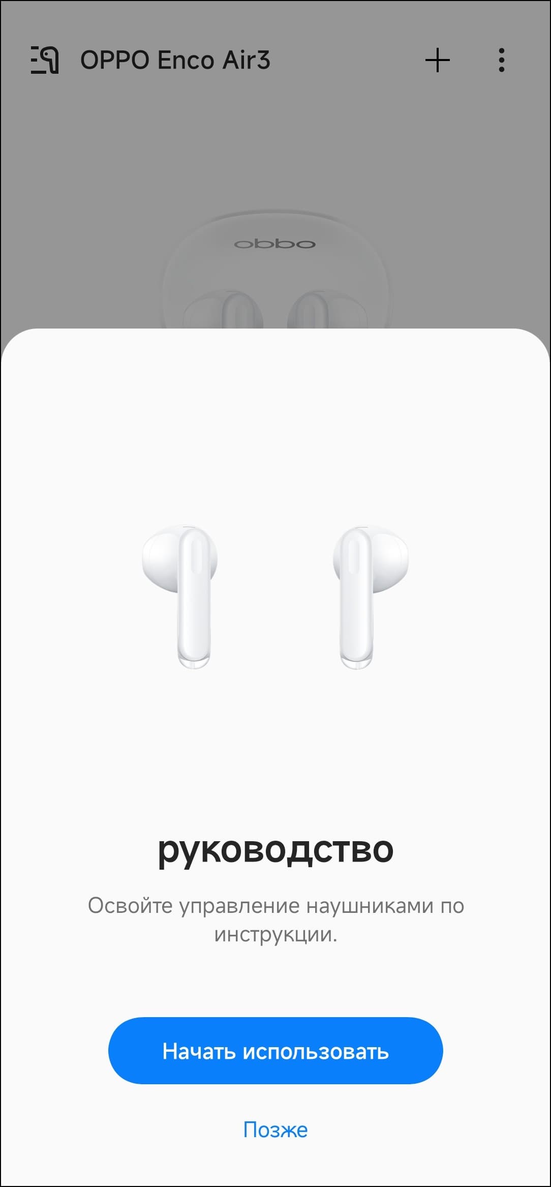 После добавления Oppo Enco Air3 в приложение HeyMelody пользователю предлагается ознакомиться с краткой инструкцией по управлению гарнитурой.