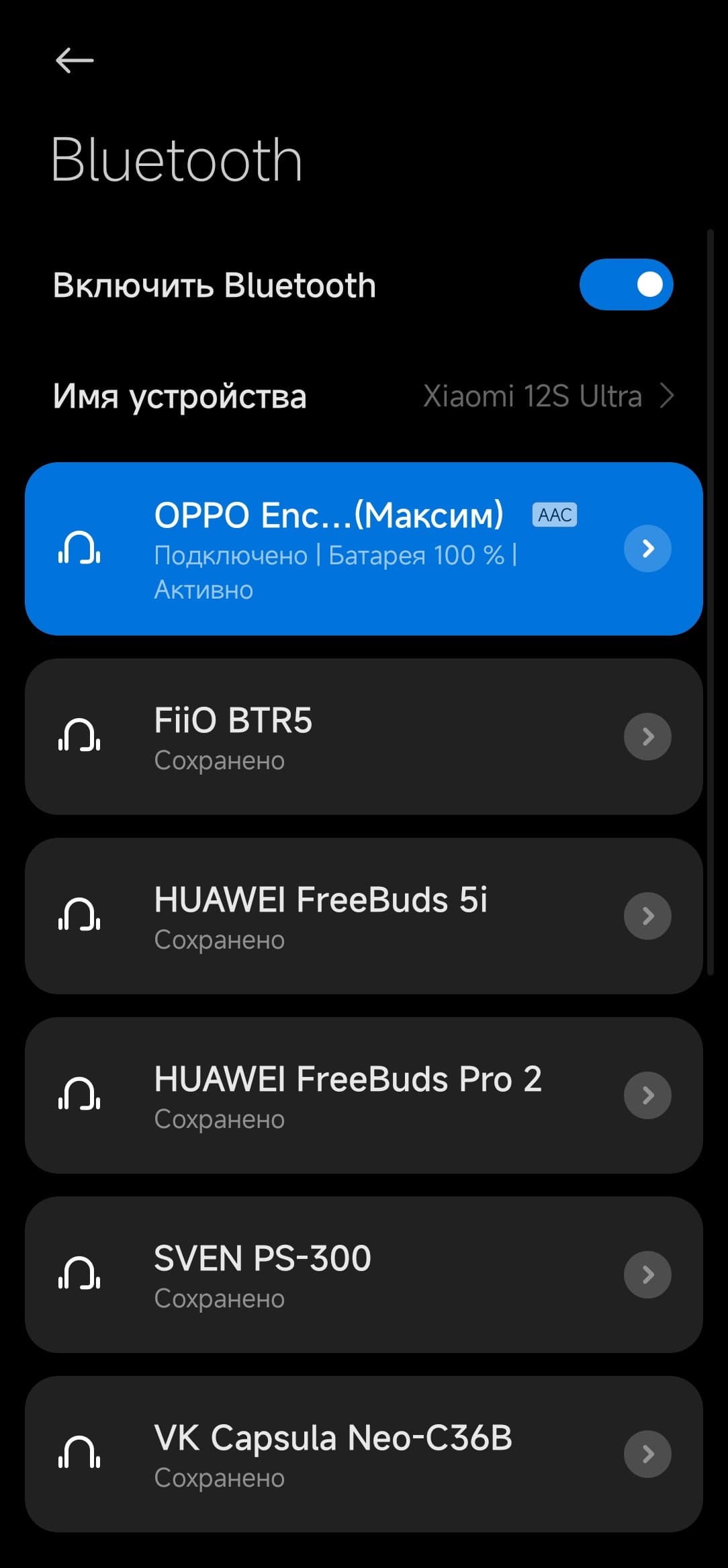 Кодека поддерживается два: базовый SBC и немного более «продвинутый» AAC. Полный список поддерживаемых кодеков и их режимов мы традиционно получили с помощью утилиты Bluetooth Tweaker, а заодно проверили работу мультипойнта, подключив Oppo Enco Air3 одновременно к смартфону и ПК под управлением Windows 11. Всё отлично работает, фокус перемещается автоматически и в нужное время, но есть один нюанс: одновременное подключение двух устройств необходимо предварительно активировать в приложении HeyMelody.
