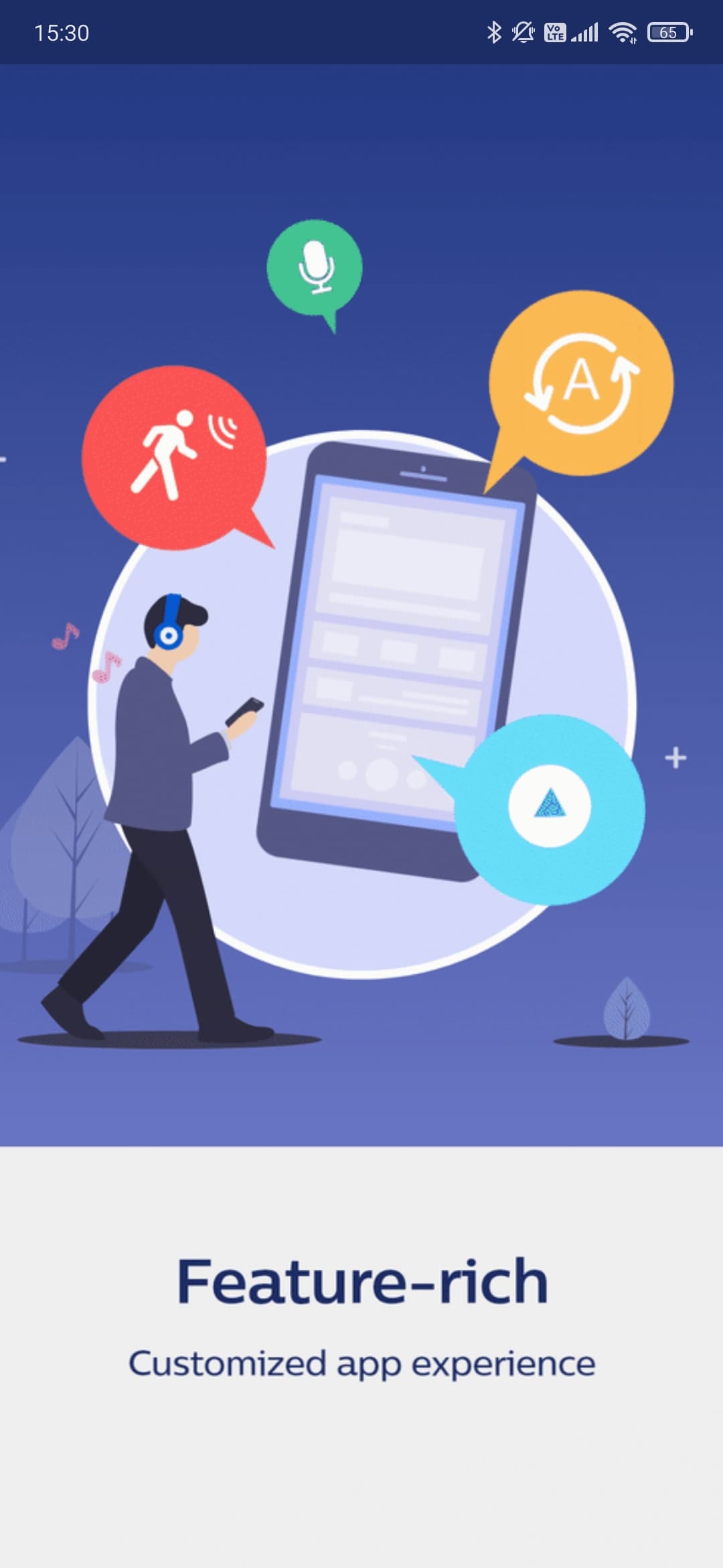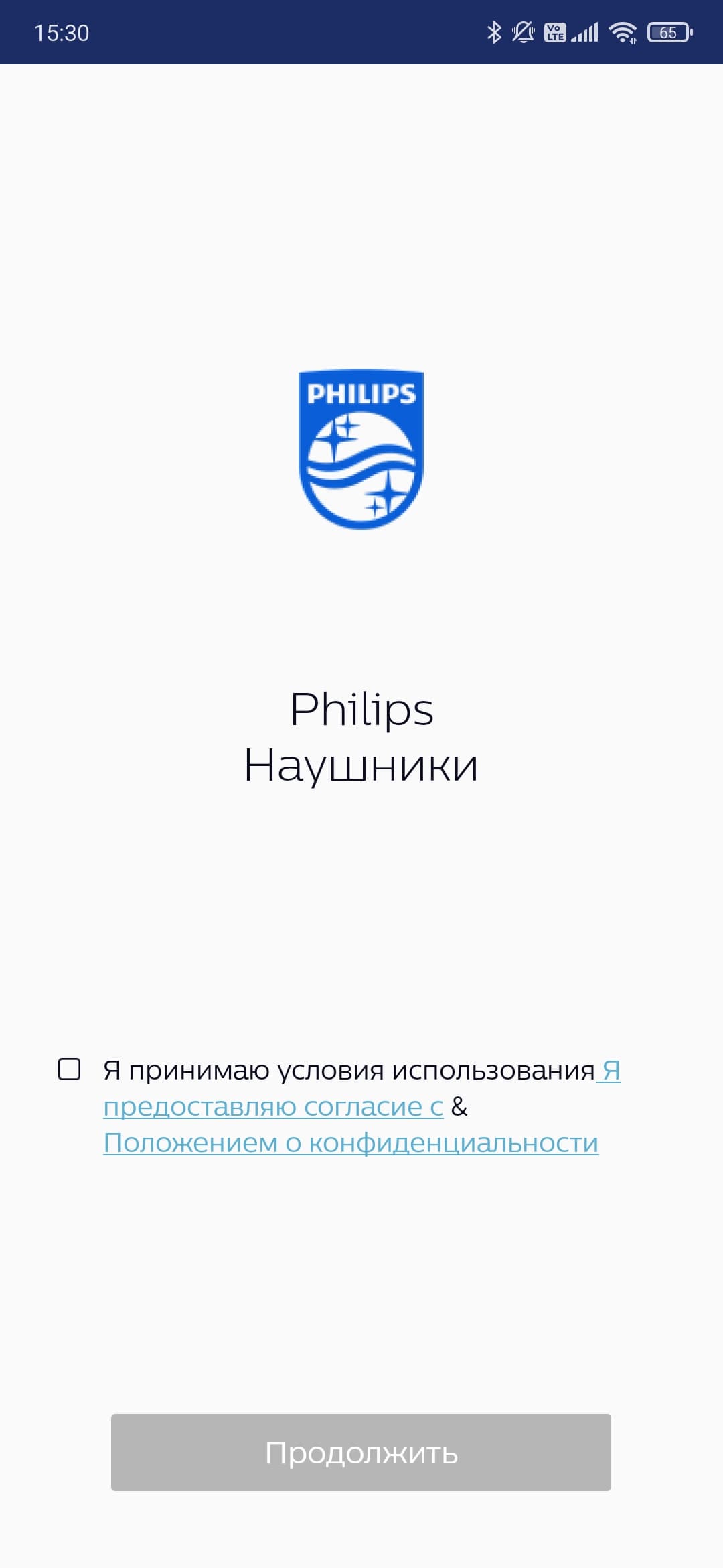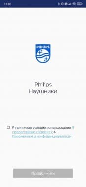 В итоге заметную часть времени тестирования наушники эксплуатировались с отключенной сенсорной панелью — к счастью, это можно сделать с помощью приложения Philips Headphones, о котором мы и поговорим. Доступно оно для устройств под управлением iOS и Android, мы воспользовались вторым вариантом. После установки приложение предлагает согласиться с правилами использования, показывает пару рекламных экранов, после чего запрашивает разрешение на доступ к местоположению.