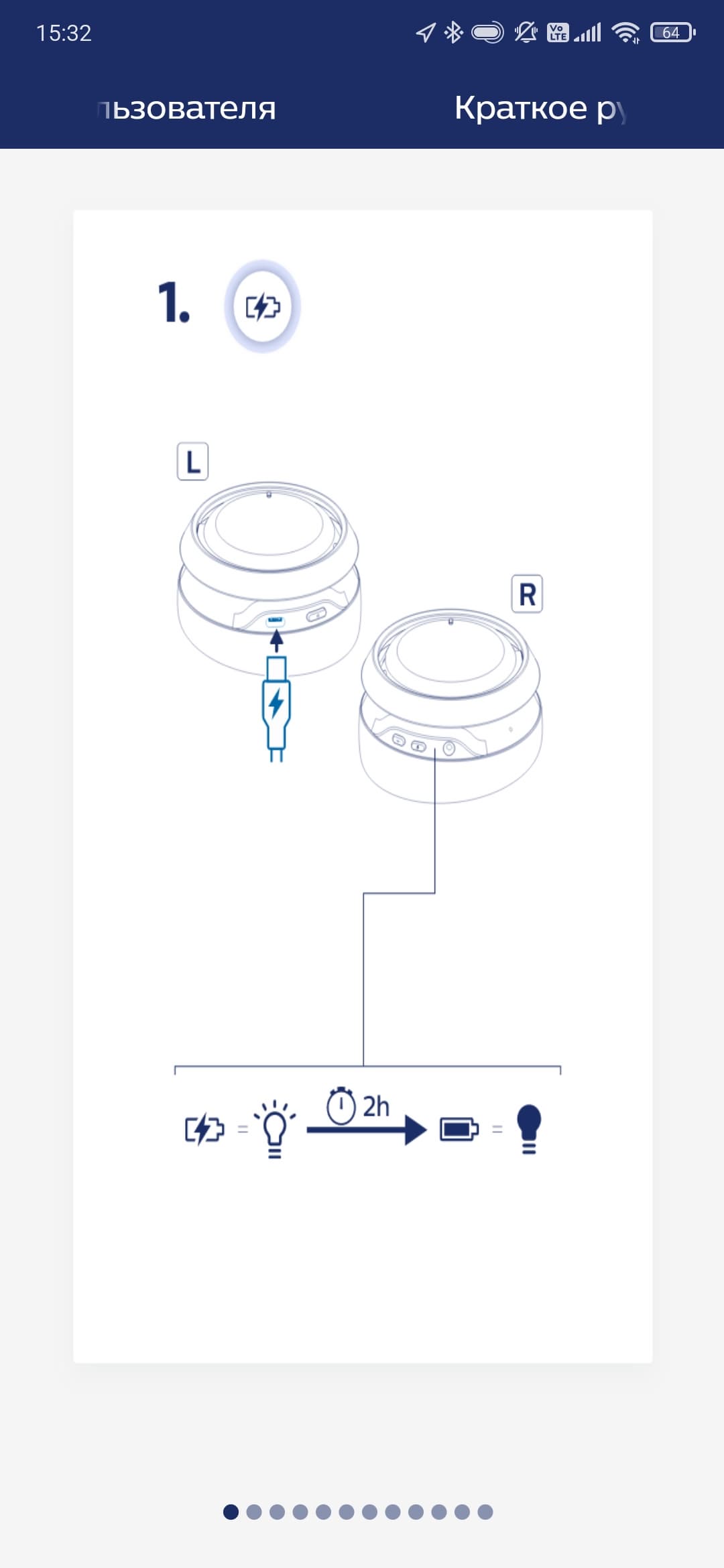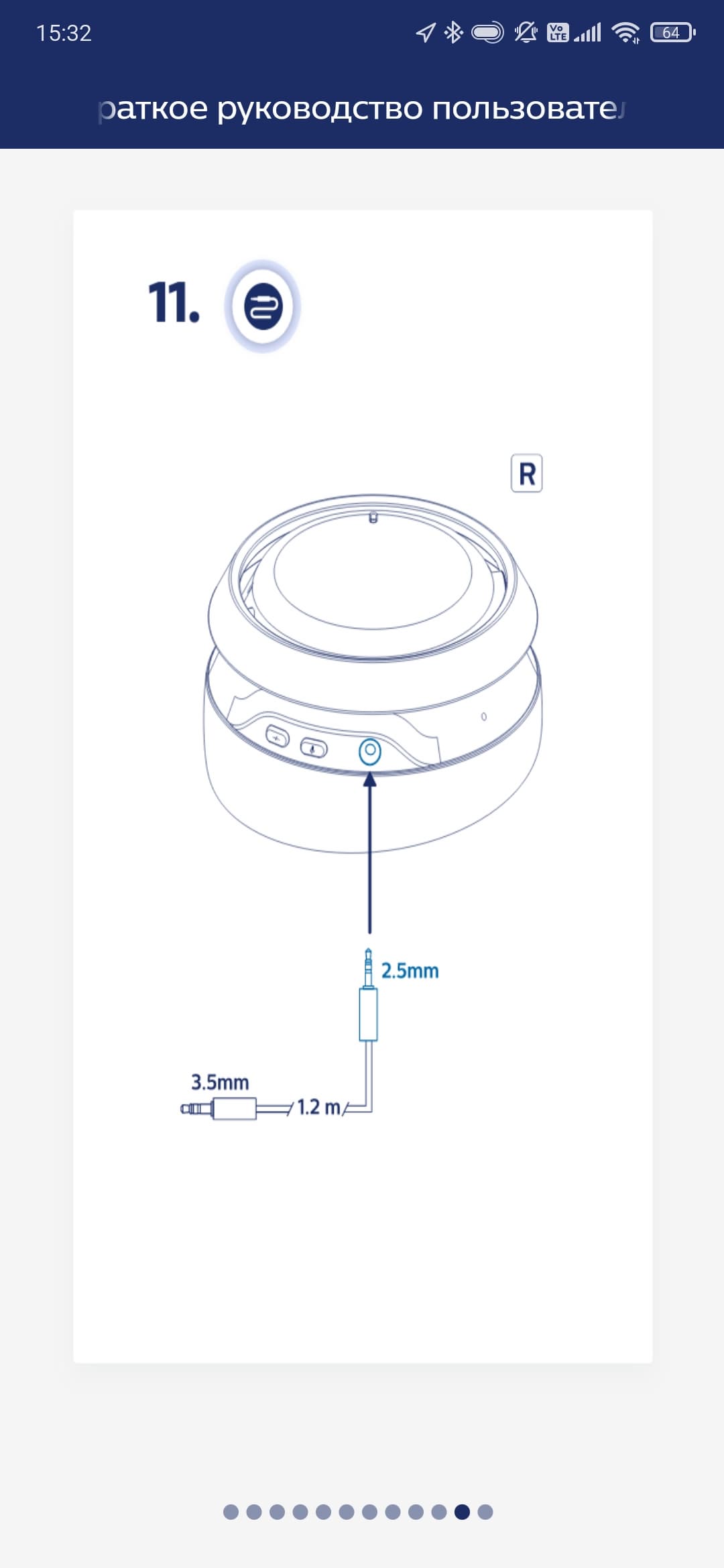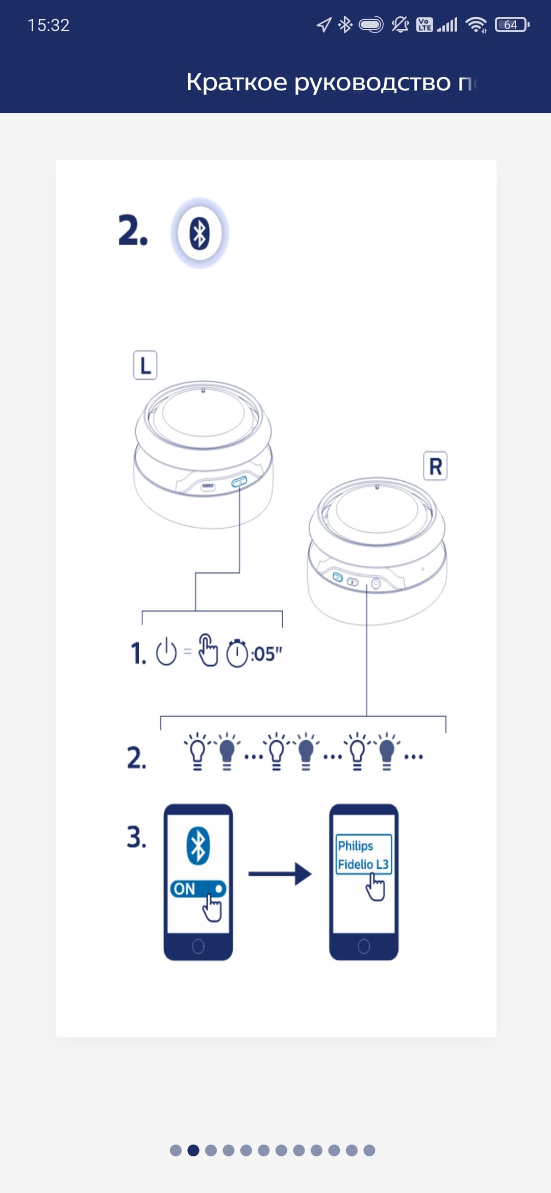 Далее пользователю предлагается подробная инструкция по подключению гарнитуры и основным возможностям управления. Как можно заметить ниже, одиночный тап управляет воспроизведением, свайпы влево и вправо листают треки.