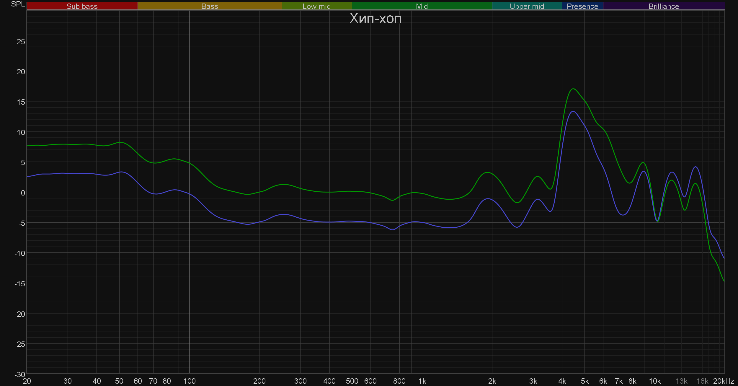 Низкочастотный диапазон традиционно подчеркнут, но в меру — он не мешает воспринимать СЧ-регистр и не раздражает излишней гулкостью, несмотря на насыщенный «глубокий бас». Средние частоты подаются вполне ровно, хоть и не без своих особенностей, которые мы увидим чуть ниже. Главная их черта — крайне неплохой уровень детализации, который отлично сказывается на восприятии вокала и партий солирующих инструментов.
