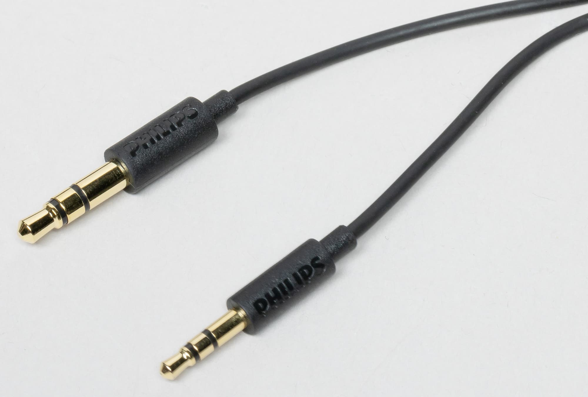 Аудиокабель для проводного подключения к источнику не очень длинный — 125 см. На одном конце у него миниджек 3,5 мм, а к наушникам он подключается посредством микроджека 2,5 мм. Сам кабель при этом очень тонкий, его диаметр — 1,7 мм. И вот, вроде, внешне он не дает особых поводов сомневаться в своей надежности, но все же как-то хочется чего-то более основательного — устройство-то у нас не самое дешевое, да и потенциальные нагрузки на кабель высоки.