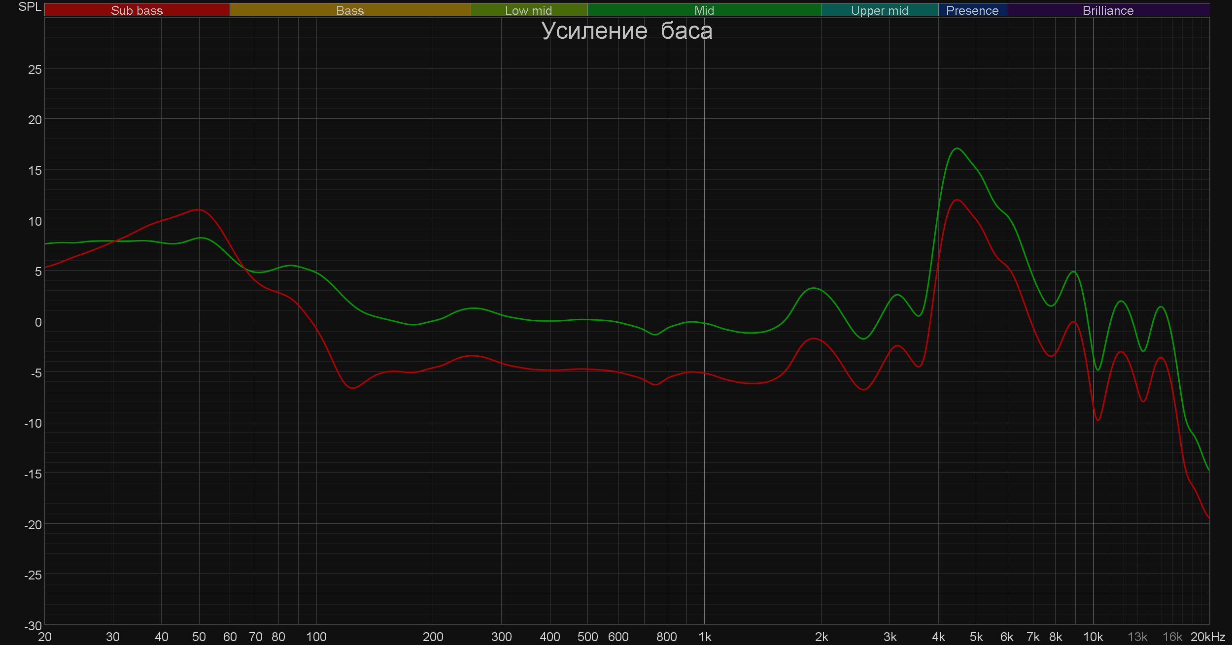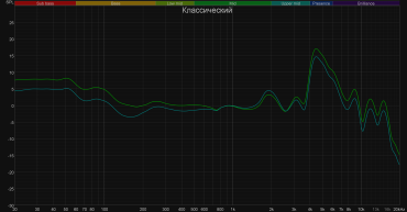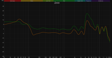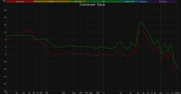 При этом свое воздействие на частоты ниже эквалайзер оказывает, просто больше не за счет повышения уровня НЧ-диапазона, а за счет увода назад всего остального — график АЧХ при активации пресета «Усиление баса» прекрасно это демонстрирует. Ну и в целом АЧХ изменяется чуть иначе, чем можно было бы предположить, исходя из положения регуляторов и надписей под ними. Тут проще немного абстрагироваться от надписей и больше ориентироваться на слух и впечатления от звучания.