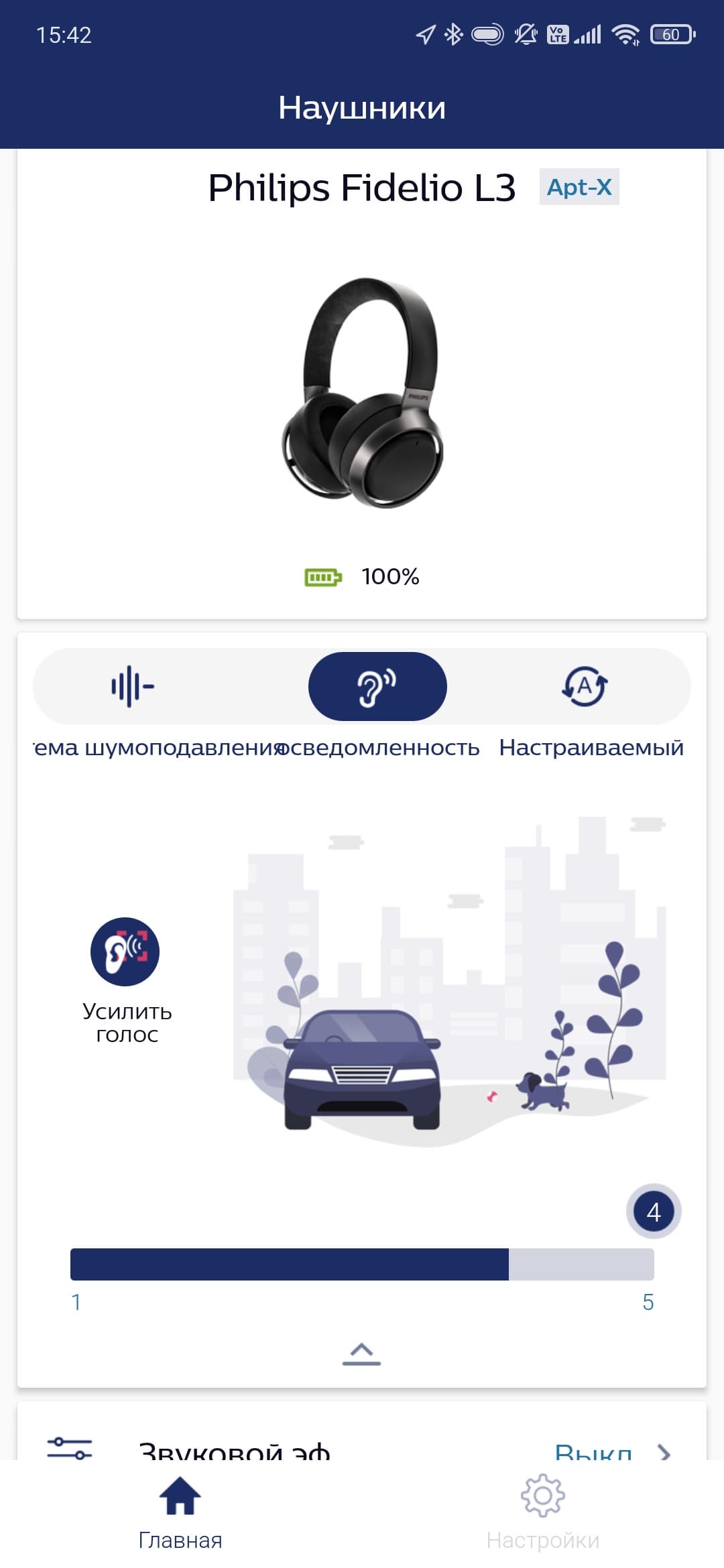 Режим адаптивной настройки в зависимости от активности пользователя одновременно оперирует «звуковой прозрачностью» и степенью агрессивности шумоподавления. Типы активности определяются точно, а вот активируемые пресеты часто вызывают недоумение — например, если Fidelio L3 определяет, что пользователь сидит на месте, она включает «звуковую прозрачность». Зачем — не очень понятно. К счастью, от использования всяких «продвинутых» функций легко отказаться, без них тоже неплохо.