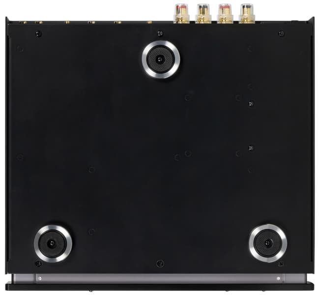 На нижней части корпуса размещено три ножки с резиновыми накладками. К устойчивости Primare I15 Prisma никаких вопросов не возникает — ножки сравнительно крупные, а масса устройства солидная и составляет более 6 кг.