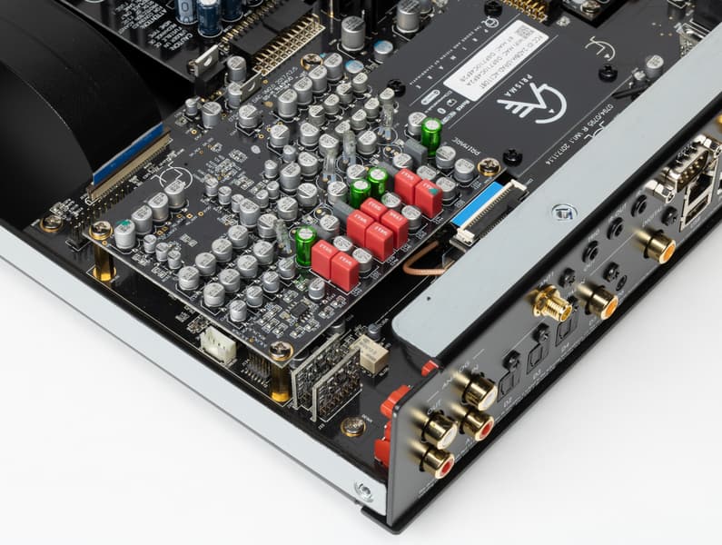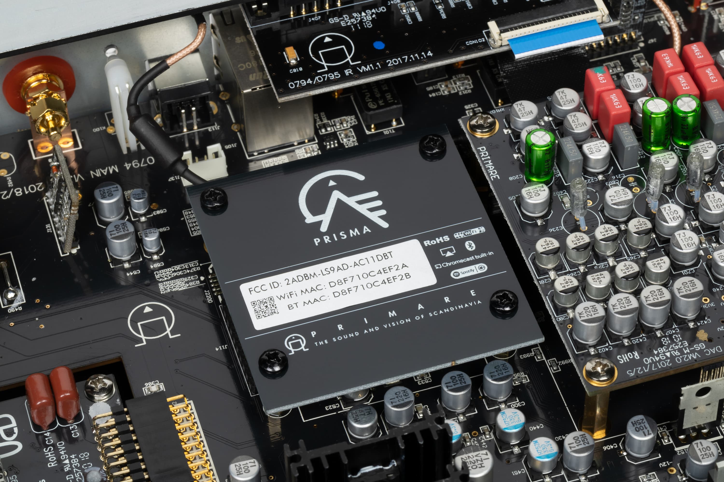 За стриминговые функции: от связи посредством Wi-Fi и Bluetooth до декодинга музыкальных файлов разных форматов и поддержки Airplay, Chromecast отвечает тот же модуль Libre LS9AD-AC11DBT, что мы уже видели у плеера Primare NP5 Prisma.