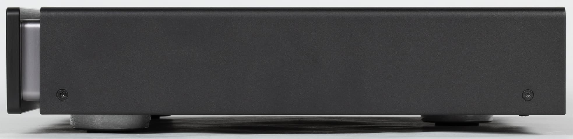 Выглядит прибор солидно и даже массивно, огромную лепту в такое впечатление вкладывает немного вынесенная вперед металлическая лицевая панель толщиной аж в 8 мм. При взгляде сбоку хорошо видно, как она расположена.