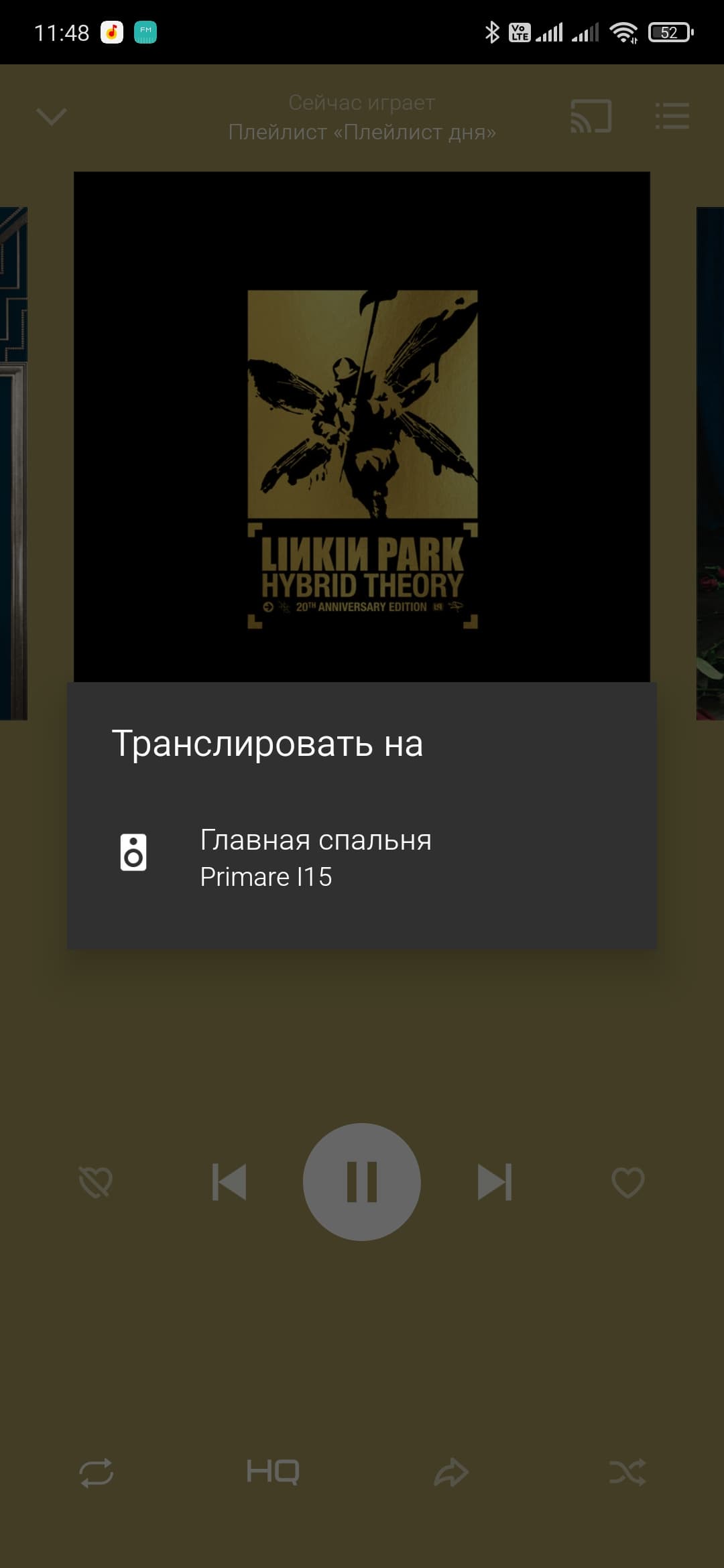 Ранее мы показали два варианта подключения: базовый посредством Wi-Fi из приложения Primare Prisma и с помощью Chromecast, который обеспечивает гораздо больше интересных возможностей. В этот раз решено было не экспериментировать и сразу воспользоваться им. Возможность транслировать контент на Primare I15 Prisma появилась сразу во всех используемых приложениях: от «Яндекс.Музыки» и Tidal до сравнительно малоизвестного, но очень интересного плеера для подкастов Podcast Addict.