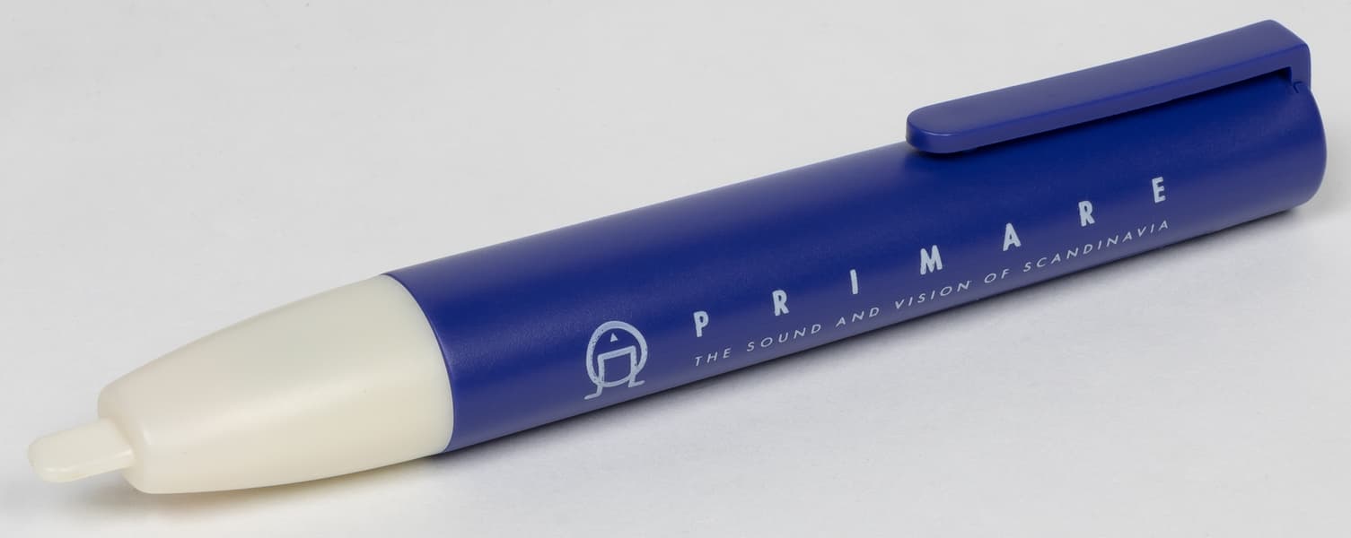 Детектор питания выглядит как ручка, о наличии фазы сигнализирует свечением яркого красного светодиода в нижней белой части корпуса.