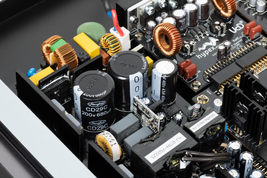 Для начала посмотрим на платы сверху, чтобы представить общую картину. А потом немного поговорим про различные компоненты. Сразу отметим секцию усиления UCD102 голландской компании Hypex, продукты которой в последнее время стали чуть ли не «индустриальным стандартом» для высококлассной аудиотехники.
