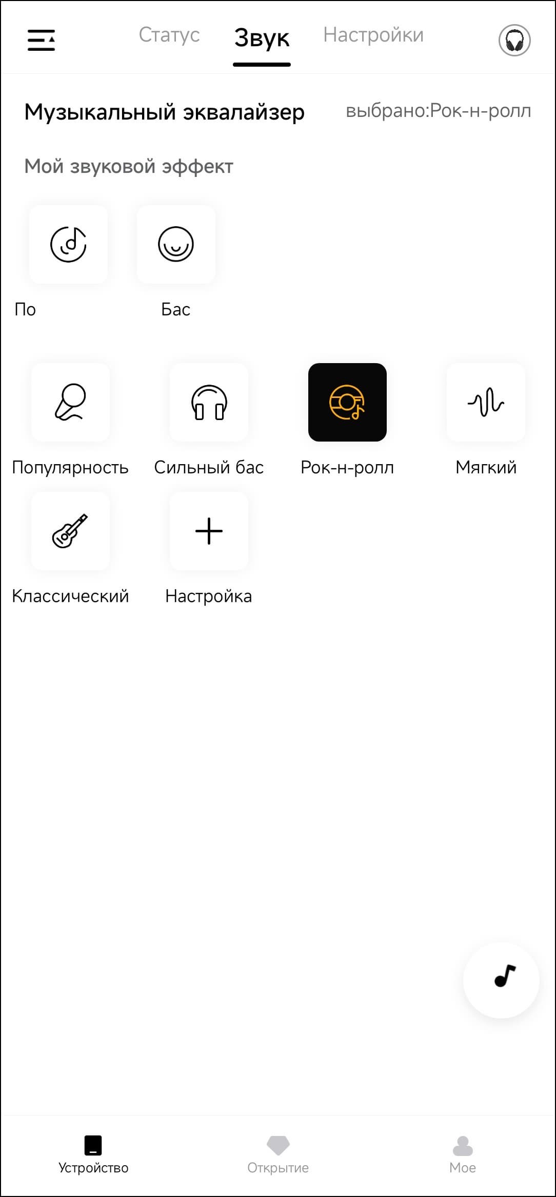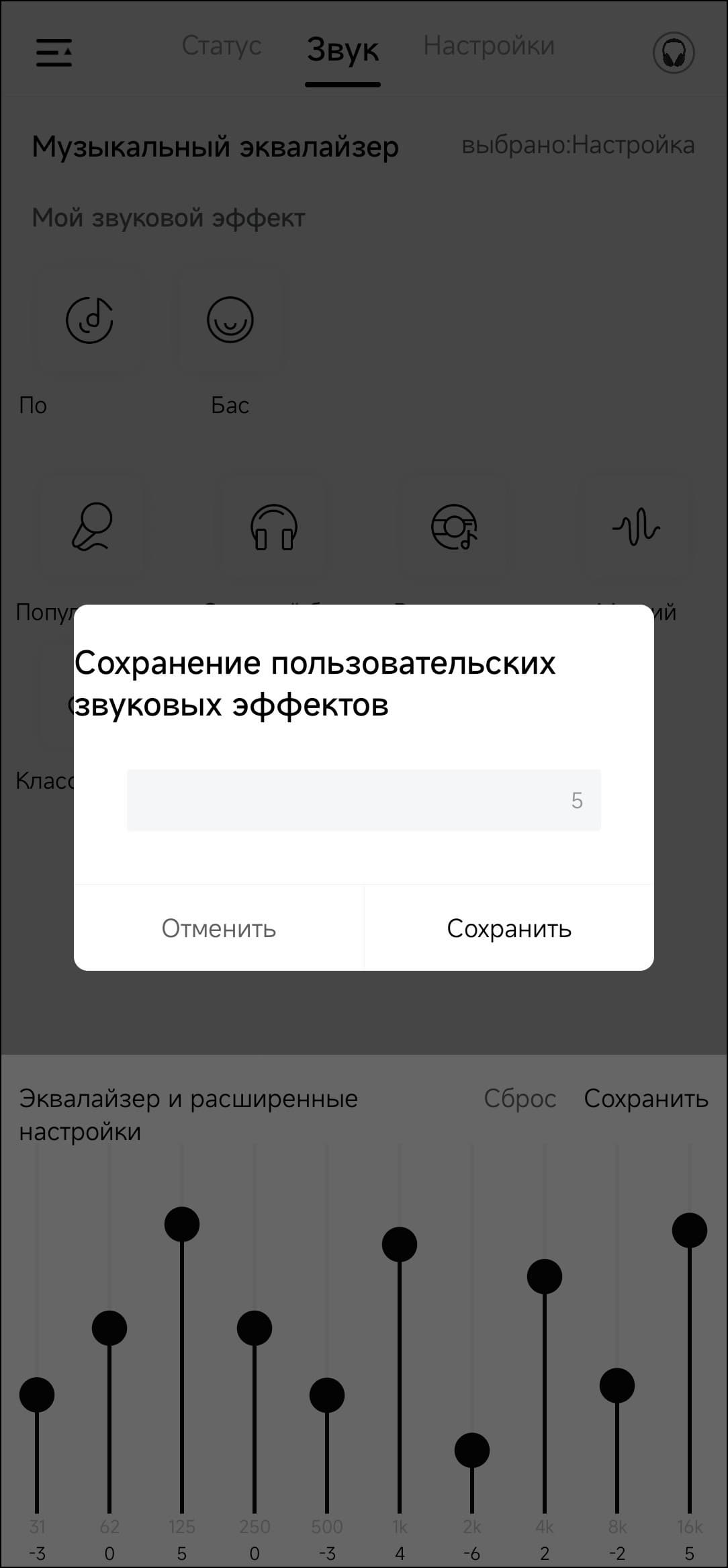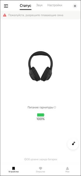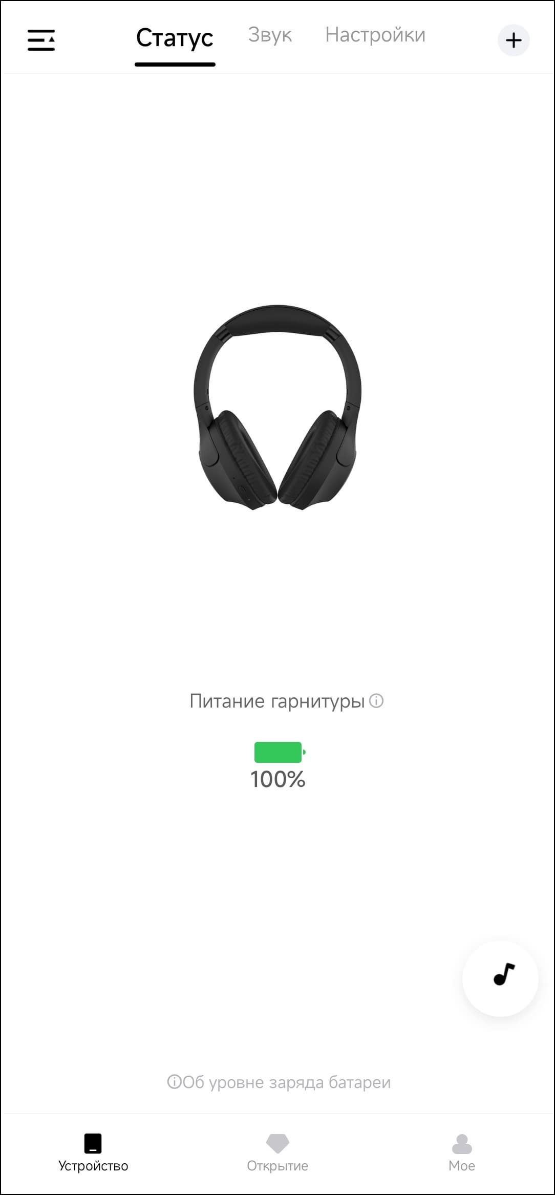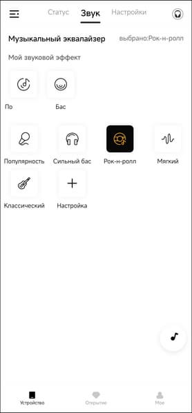 Требует приложение поразительно много, а делает при этом очень мало. На главном экране можно посмотреть уровень зарядки аккумулятора, во вкладке «Звук» — активировать усиление баса, а также выбрать один из профилей звучания или настроить свой с помощью 10-полосного эквалайзера.