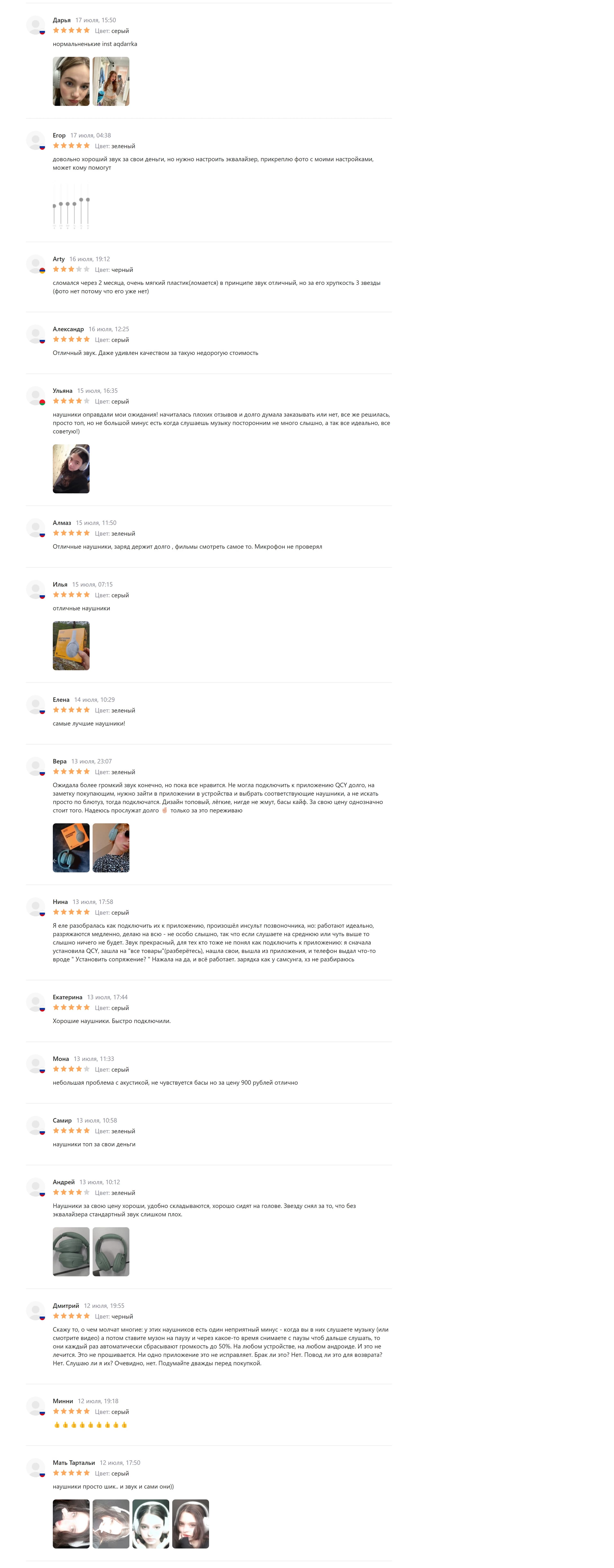 Давненько мы не заглядывали в ультрабюджетный сегмент наушников, а там периодически происходит много всего занимательного. На QCY H2 обратил внимание наш читатель: мол, интересно поподробнее узнать про очень популярные и очень дешевые полноразмерные беспроводные наушники. И действительно, эта модель и так стоила крайне недорого, а в последнее время ряд продавцов в России предлагают ее дешевле 1000 рублей. При этом рейтинг QCY H2 на всех торговых площадках высочайший, восторженных отзывов — сотни. Вот, например, несколько скриншотов с Wildberries, где мы в итоге и приобрели наушники.
