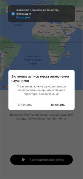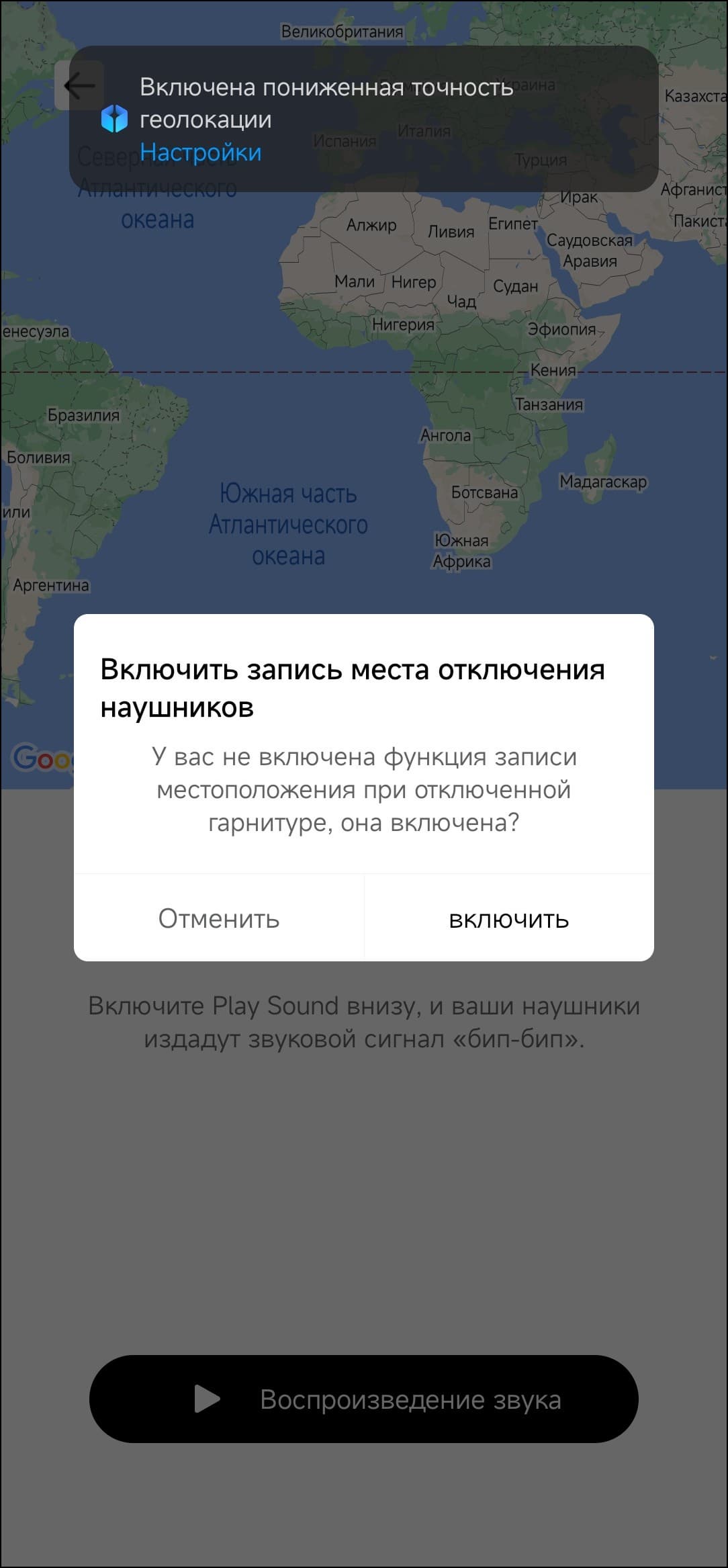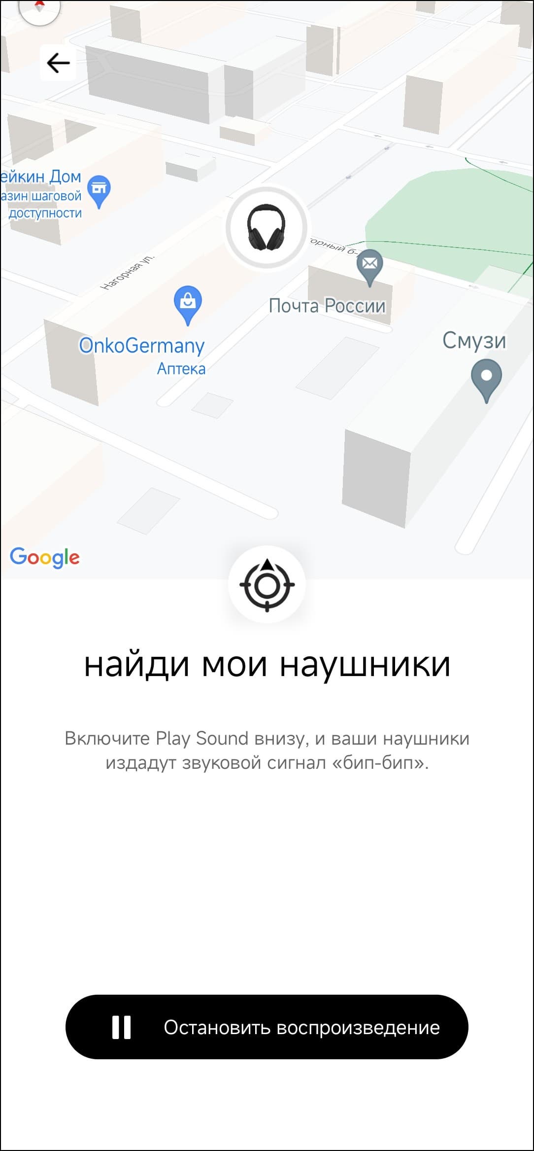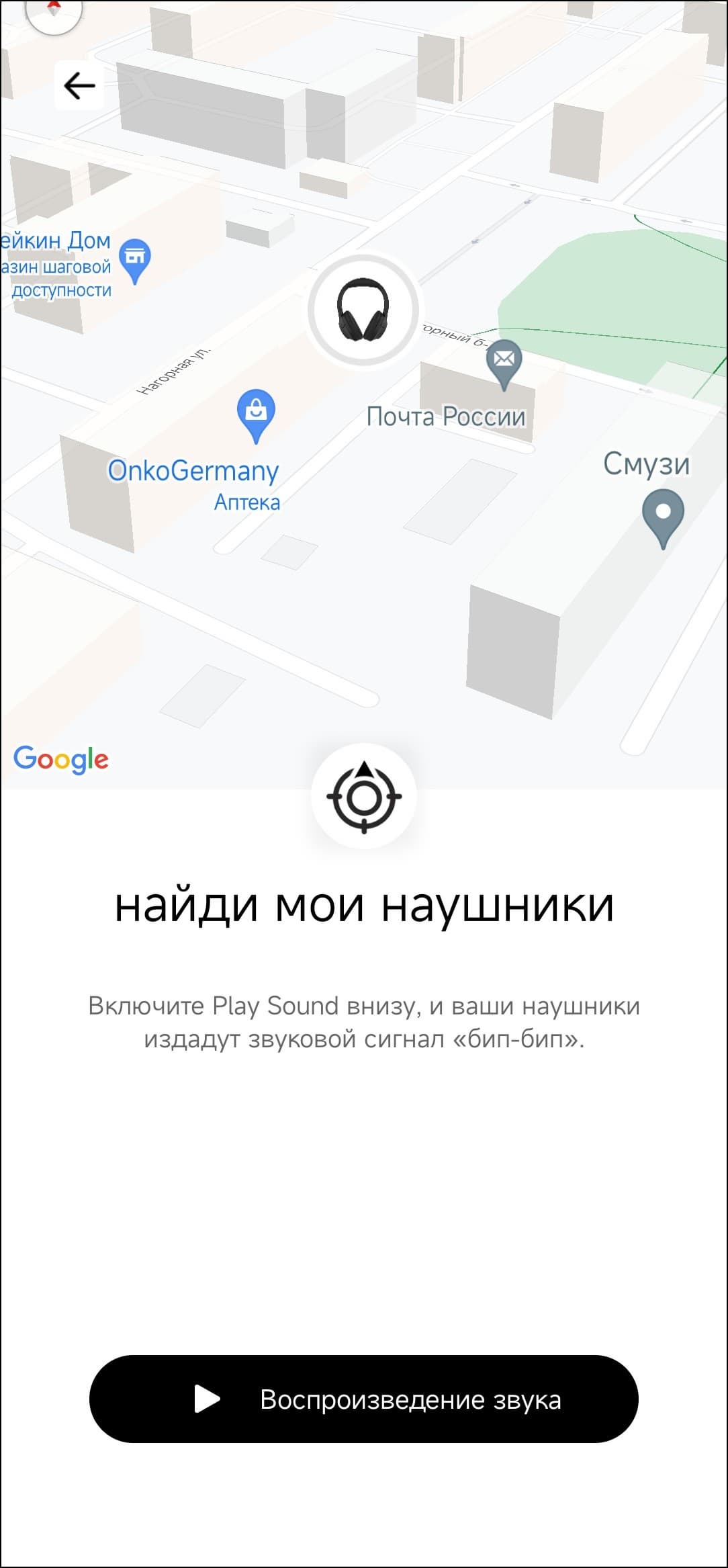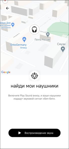 Также есть функция поиска наушников, в том числе — с помощью сигнала через динамик, позволяющего обнаружить устройство где-нибудь в тихой комнате.