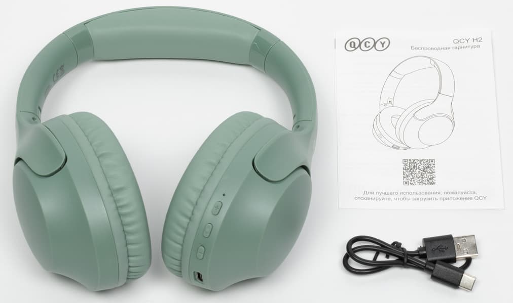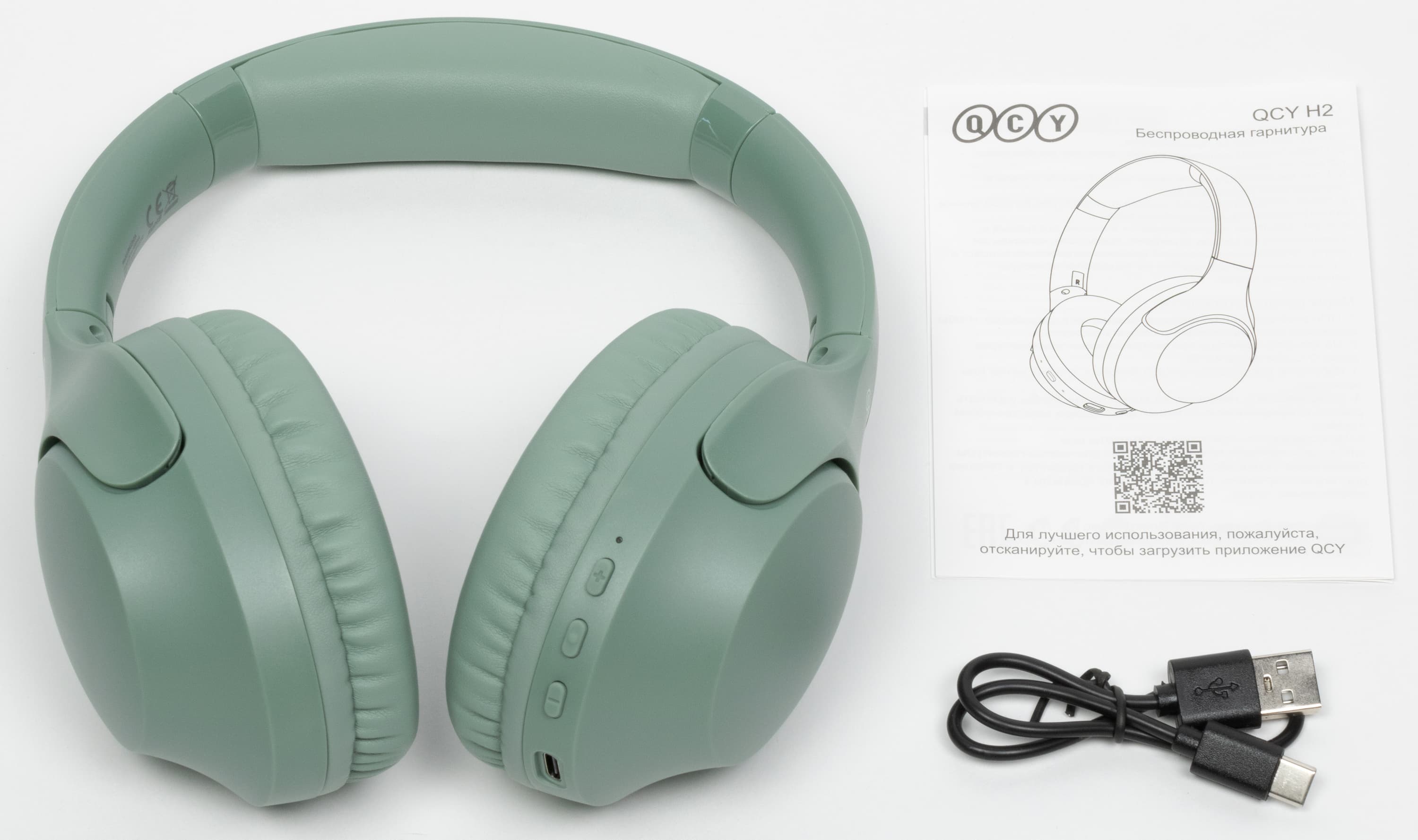 Комплект поставки невелик, в него входят сами наушники, инструкция на русском языке, а также кабель USB-A—USB-C для зарядки длиной 30 см.