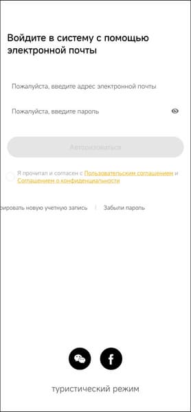 Соглашаемся и разрешаем, разрешаем и соглашаемся. Ну и под конец нам предлагают зарегистрировать аккаунт. К счастью, от этой прекрасной возможности можно отказаться, кликнув по надписи «туристический режим» — с переводом в приложении беда, конечно же.