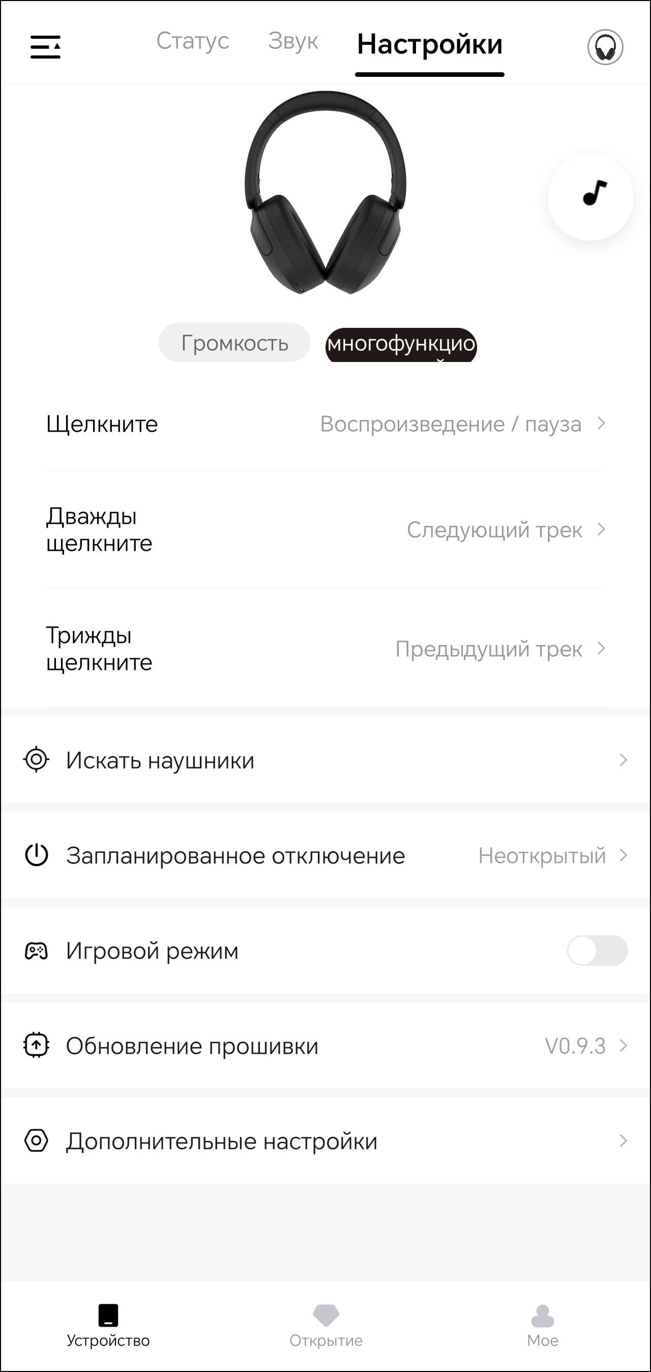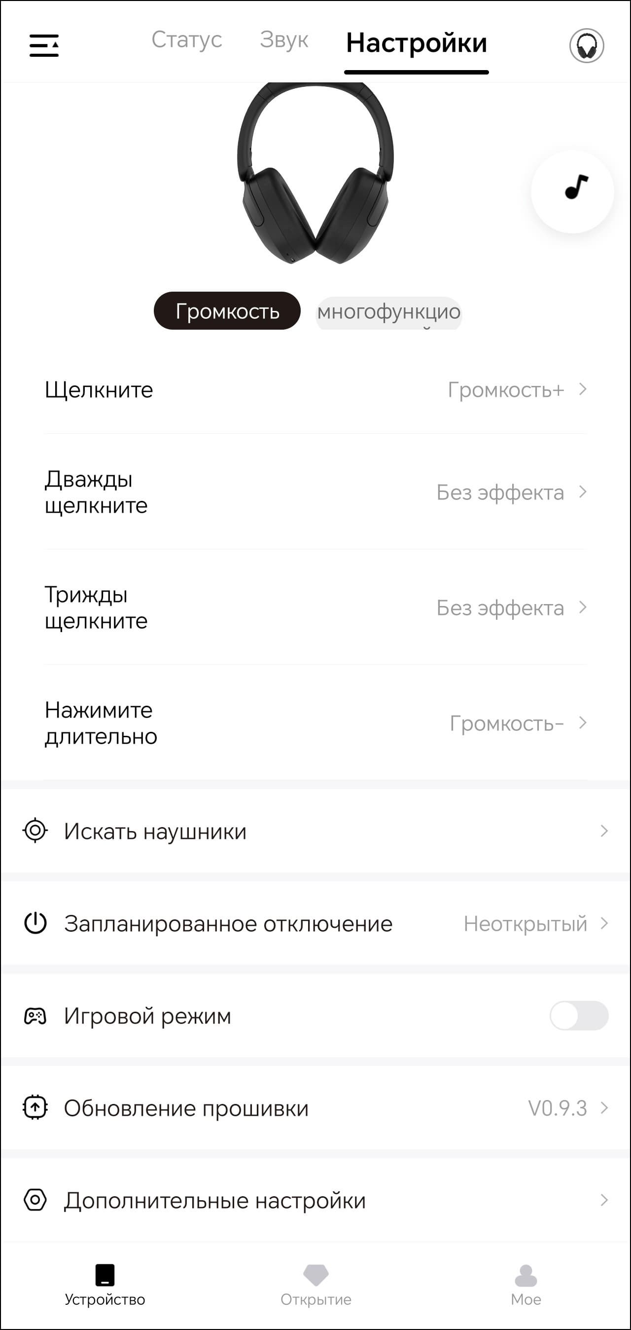 Для настройки гарнитуры служит специализированное ПО с по-прежнему невысоким рейтингом в Google Play, плохим переводом на русский и «кривой» версткой. И вроде бы всё работает, но как-то не очень корректно и стабильно. А чем дороже становятся полноразмерные наушники QCY, тем больше это раздражает. Тем не менее, воспользоваться приложением придется — множество важных функций без него будет недоступно.