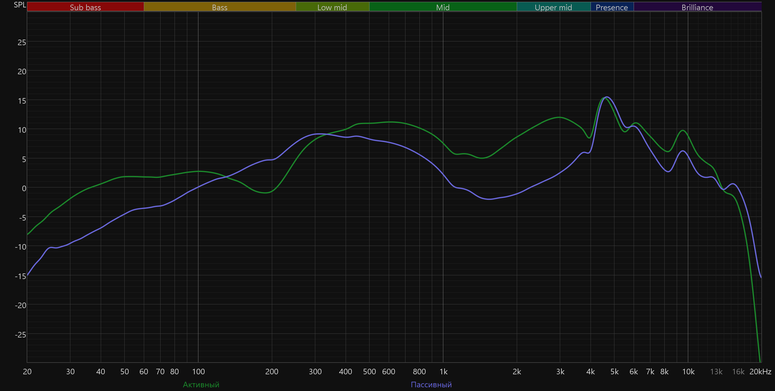 В таком виде все особенности звучания видны как на ладони: тут и звучащий откуда-то с задворок гулкий бас, и непомерно выпяченная вперед нижняя середина, и подаваемая одновременно «мутно» и резко верхняя часть диапазона.