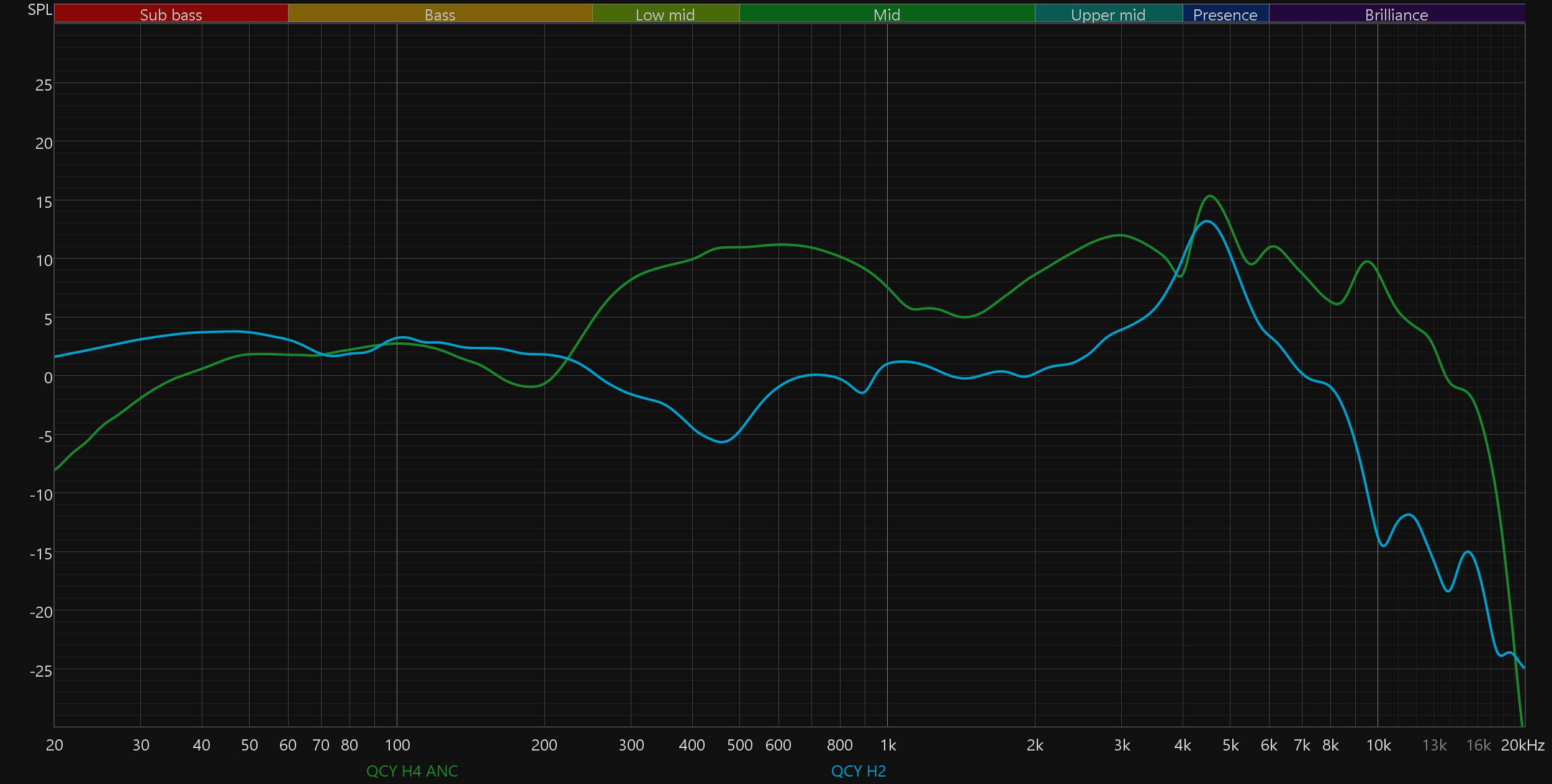 Со звуком всё снова очень плохо. «Торчащая» из микса нижняя середина, невнятный, но при этом гулкий бас, резковатые высокие — не наушники, а сборник типичных дефектов звучания бюджетных моделей. Трудно выбрать, какой из «горбов» на графике АЧХ хуже, все вносят свою посильную лепту в то, чтобы максимально «расшатать» тональный баланс.