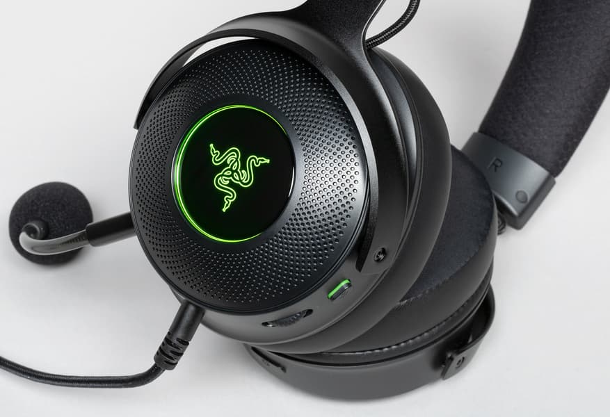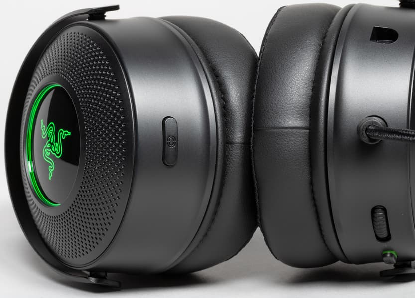 Как уже говорилось выше, корпус у тестируемых наушников одинаковый — для примера возьмем Kraken V3 HyperSense. Логотип на внешней части чашек оснащен разноцветной и полностью настраиваемой RGB-подсветкой с огромным количеством режимов свечения.