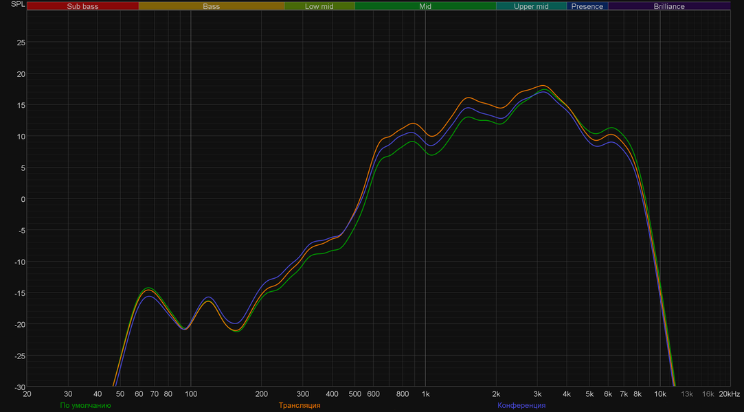 Что же касается опции «четкость речи», то четкость-то действительно повышается. Вот только происходит это за счет еще большего «урезания» НЧ-регистра и акцента на верхней середине. Разборчивость растет, а вот полновесность и естественность звучания голоса ощутимо падает — во время чата на фоне плотного звукового сопровождения игры функцией можно аккуратно воспользоваться, но слишком усердствовать не нужно — о комфорте слушателей тоже не стоит забывать.