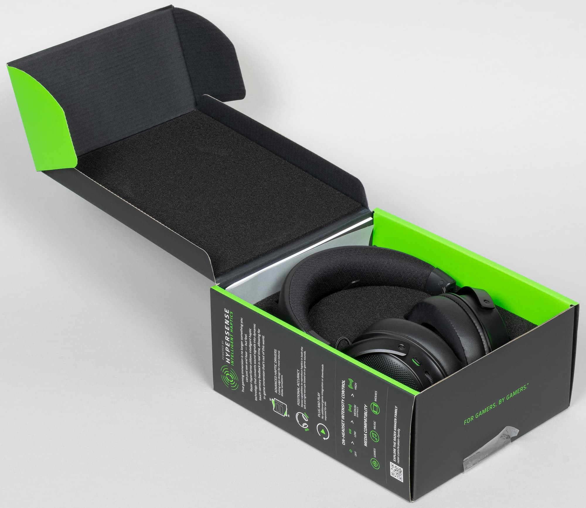 Дизайн коробок обеих гарнитур выполнен в традиционном для Razer стиле: черно-зеленая гамма, крупное изображение устройства, логотипы использованных технологий и краткое описание.
