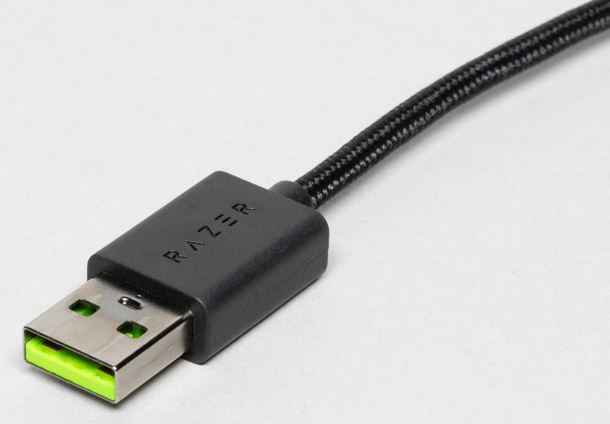 Кабель имеет длину 2 метра и помещен в приятную на ощупь тканевую оплетку — он не склонен к запутыванию и внешне позволяет надеяться на солидный уровень надежности. На конце размещена вилка USB Type A для подключения с нанесенным на нее логотипом производителя. Внутренняя ее часть традиционно окрашена в зеленый цвет.