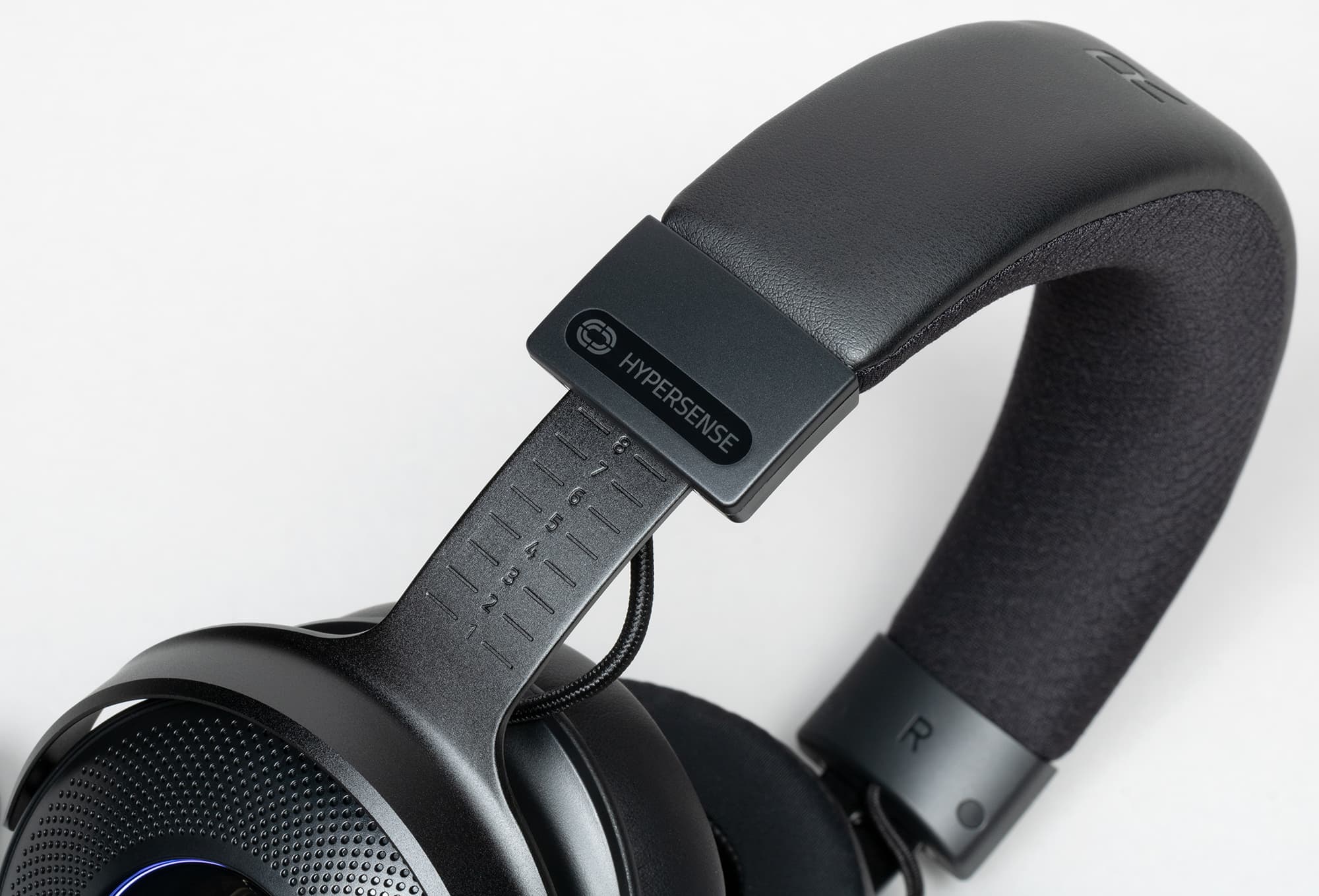 Чашки удерживаются элементом, который выдвигаются с каждой из сторон оголовья. В месте его крепления нанесено название ключевой технологии гарнитуры: HyperSense у более дорогой и «продвинутой» или TriForce — у более бюджетной.