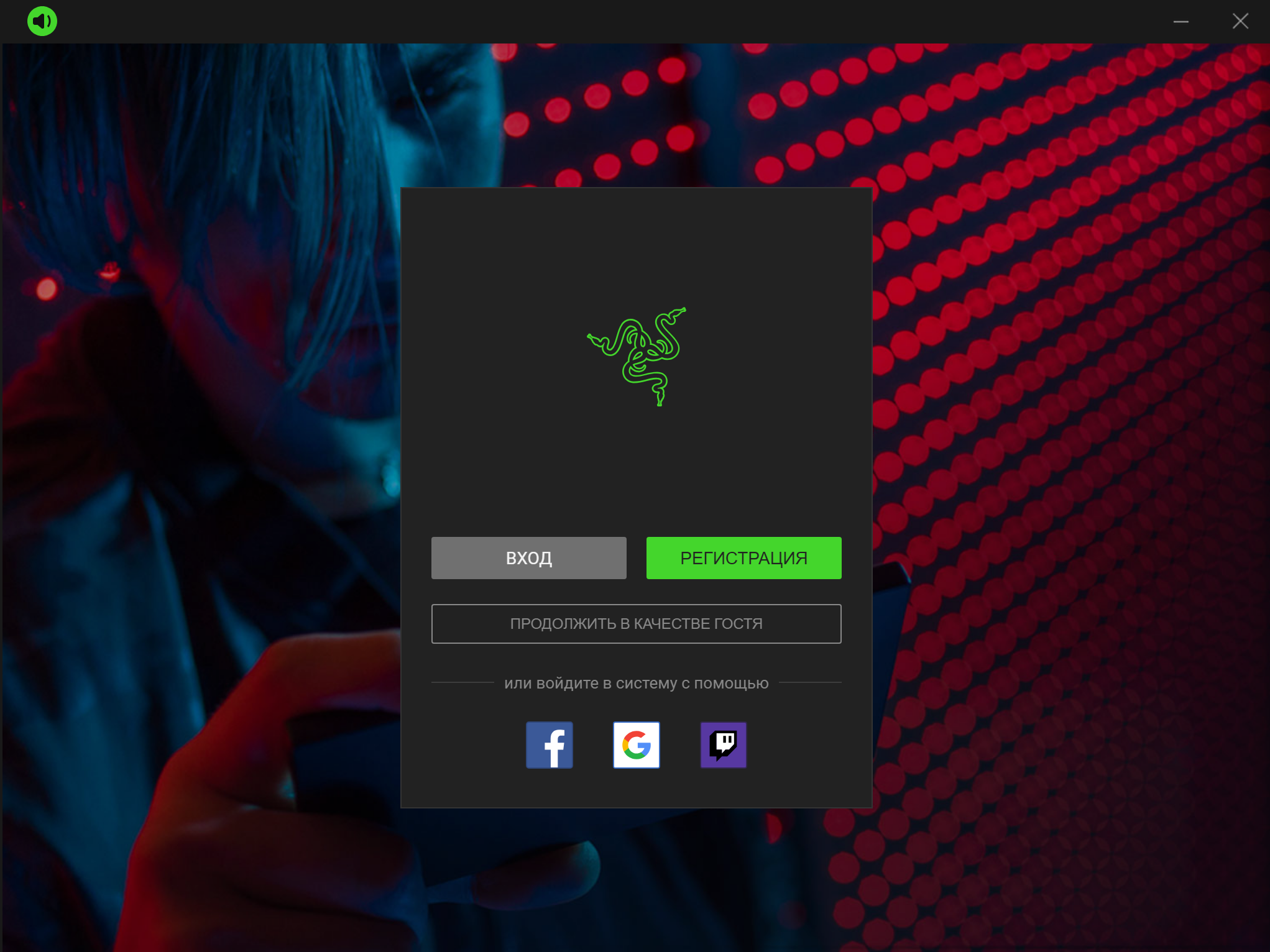 Скачивание программы Razer Synapse осуществляется с официального сайта, после установки потребуется регистрация или авторизация.