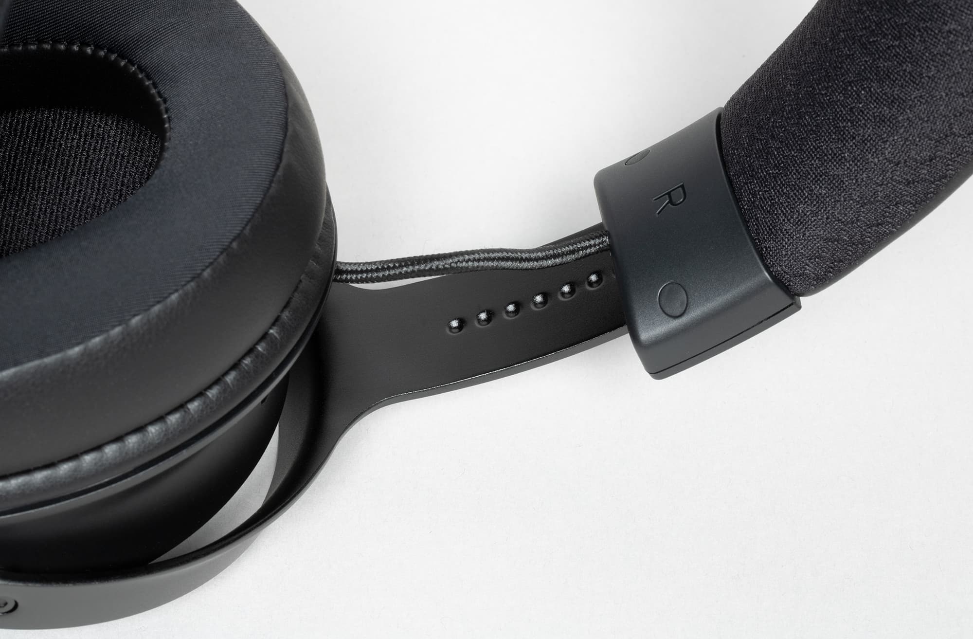 Внутренняя часть оголовья обтянута «дышащей» тканью с мягкой подложкой толщиной чуть более 1 см, что обеспечивает комфортное прилегание обода к верхней части головы. Крепление для микрофона на левой чашке имеет несимметричную форму, призванную не допустить его неправильное размещение.