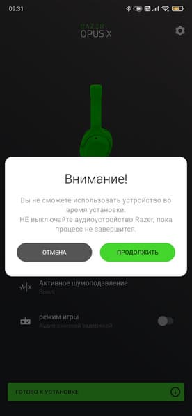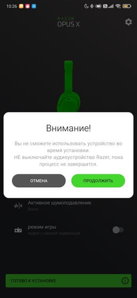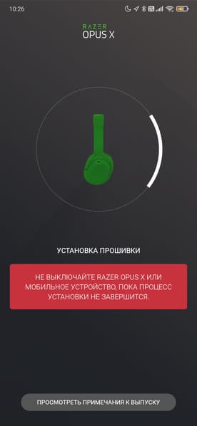 А вот и первая польза от приложения: после добавления наушников оно сразу предлагает обновить их прошивку. Соглашаемся, конечно. Дело хорошее. Загружаем, переходим к установке…