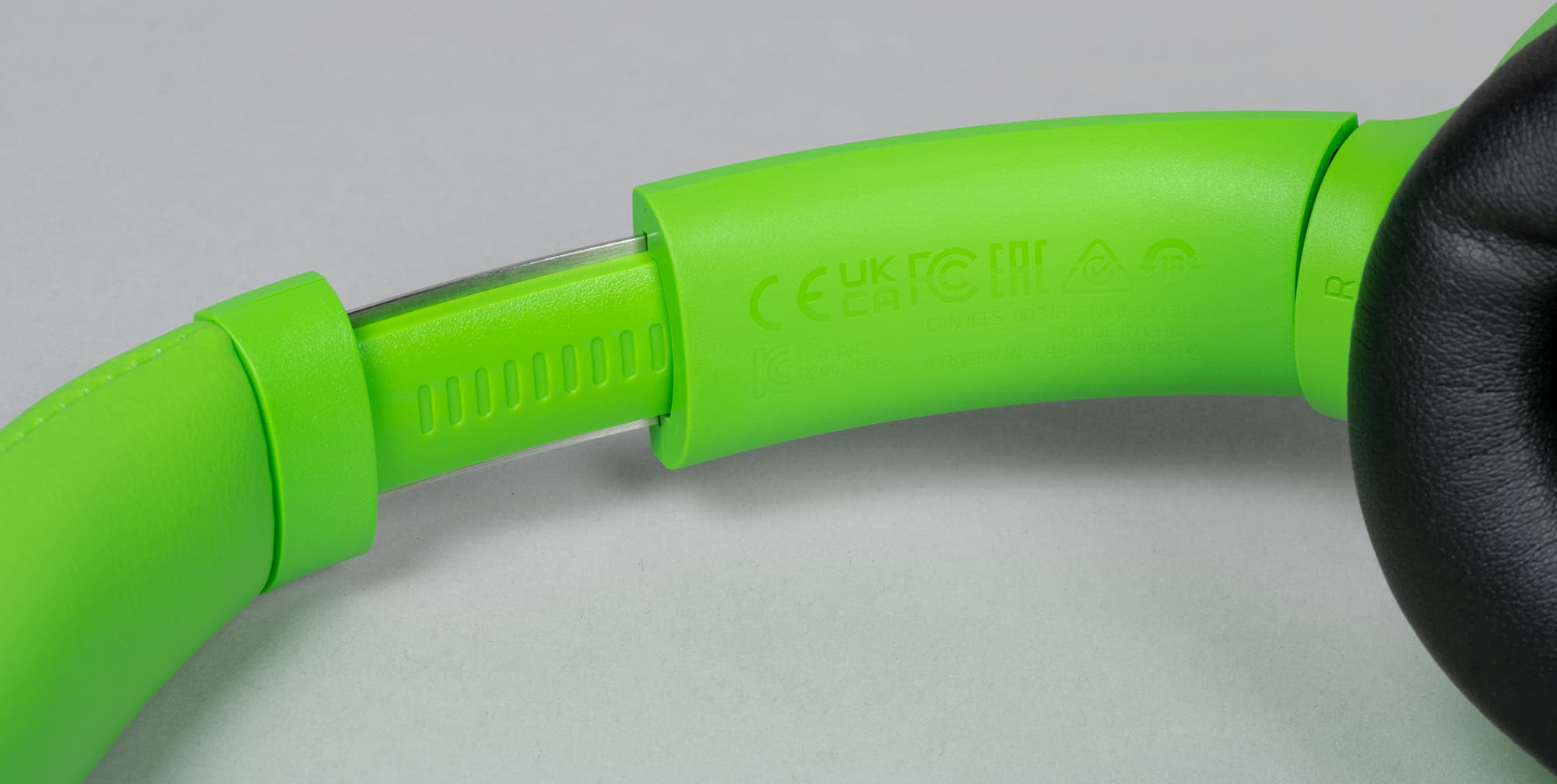 Название производителя нанесено на концы оголовья с обеих сторон и не слишком бросается в глаза. Чашки вращаются примерно на 10° в одну сторону и на 90° в другую, плюс могут «раскачиваться» примерно на 10°, что позволяет достичь надежной и комфортной посадки. В верхней части левой чашки размещена наклейка с серийным номером, под ней мы видим ряд отверстий, такие же есть и с другой стороны. По всей видимости, они служат для сброса лишнего давления во время работы динамика.