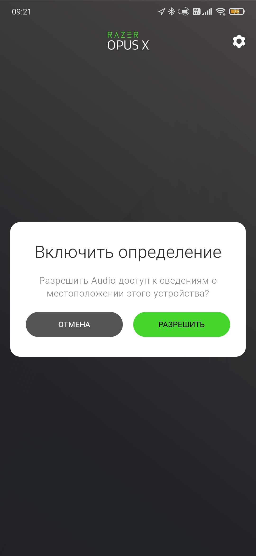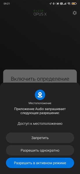 Для настройки наушников существует программа Razer Audio, доступная под iOS и Android. Делать она позволяет не так-то и много, но поставить все равно стоит — пригодится. После установки и попытки «привязать» наушники приложение запрашивает доступ к местоположению, который ему особо-то явно и не нужен. Чаще всего подобное поведение вызвано тем, что в Android доступ к местоположению связан с возможностью сканирования Bluetooth и сетей Wi-Fi.