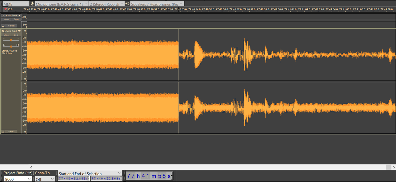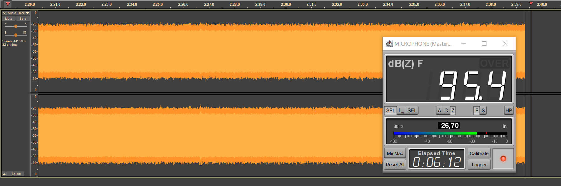 Безопасным уровнем звукового давления при прослушивании музыки в наушниках считается 75 дБ, но на практике большинство слушателей предпочитает уровень 90-100 дБ. Мы транслируем в наушники белый шум, фиксируя уровень SPL в районе 95 дБ, сразу после старта воспроизведения запускаем запись сигнала с измерительного стенда — по длине получившегося трека легко понять, сколько проработало устройство.