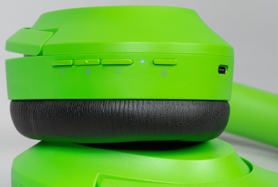 На правой чашке размещен пульт управления из четырех кнопок, а также светодиодный индикатор состояния. Расположенная поодаль от остальных кнопка питания также переключает режимы шумоподавления: выключено — включено — режим прозрачности. К сожалению, каждый раз приходится пролистывать их друг за другом — немного неудобно, но привыкнуть можно. Нажимаются кнопки с приятным небольшим усилием и отчетливым кликом.