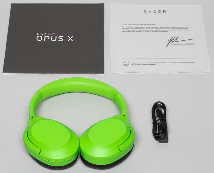 Razer Opus X поставляется в трех цветах: белом (Mercury White), розовом (Quartz Pink) и узнаваемом фирменном зеленом (Razer Green) — этот вариант и был у нас на тестировании. Цвета необычные, что для ряда пользователей — серьезный плюс, ярких наушников на рынке на удивление немного. Для тех, кто пока не готов носить яркие наушники, есть белый и вполне строго выглядящий вариант. Ну а поклонникам «черной классики» придется присмотреться к старшей модели, тут уж ничего не поделаешь.