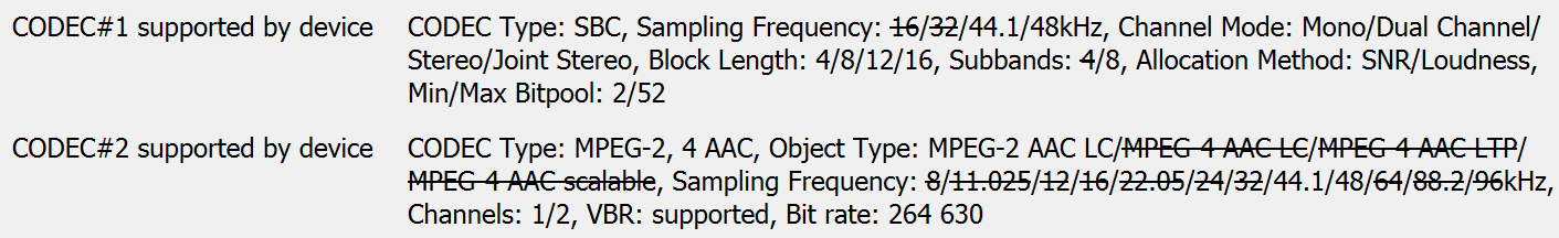 Полный список поддерживаемых кодеков и их режимов мы традиционно получили с помощью утилиты Bluetooth Tweaker. Их всего два: SBC и AAC. И вот, конечно, хотелось бы увидеть в списке еще и aptX — все же устройство хоть и бюджетное, но не дешевое.