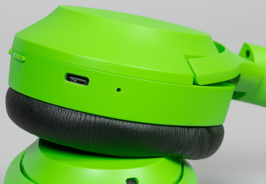 В нижней части правой чашки расположены порт USB-C для зарядки и отверстие микрофона для голосовой связи, вынесенное практически на боковую часть — ближе ко рту пользователя.