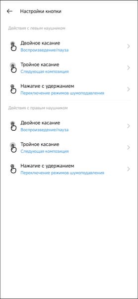 Все остальные действия настраиваются в Realme Link, причем настройки левого и правого наушника могут отличаться. Управление громкостью поддерживается, но с учетом заблокированного одинарного касания придется делать нелегкий выбор между ней и возможностью пролистывать треки.