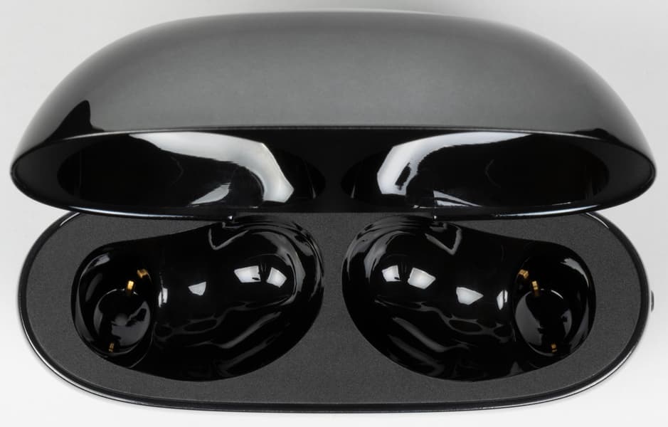 На своих местах наушники надежно удерживаются магнитными креплениями, при этом вынуть их из кейса очень легко — достаточно просто обхватить пальцами с боков и потянуть вверх.