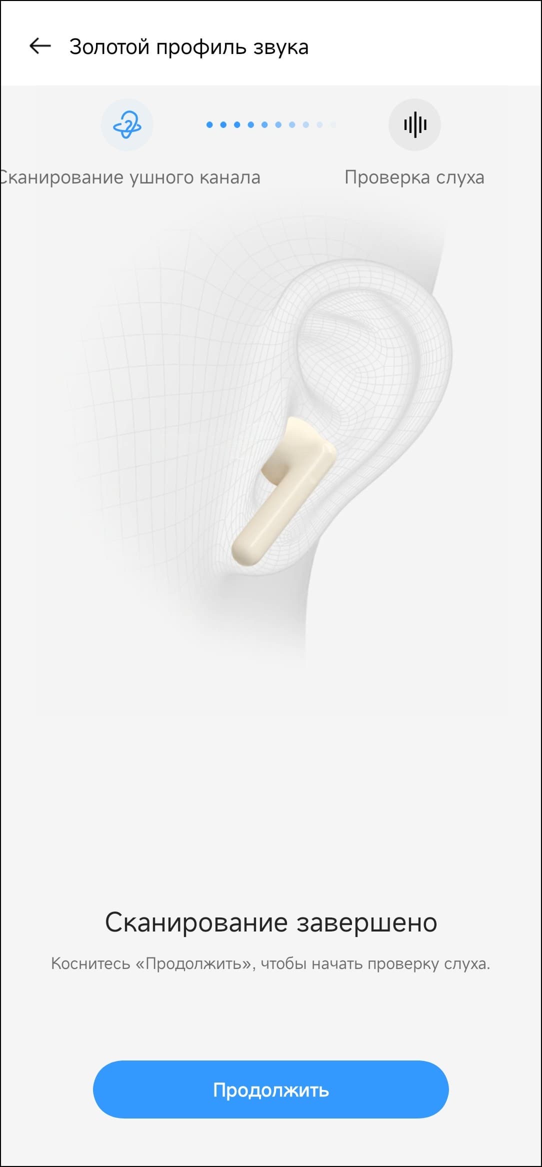 Вновь реализована возможность настройки «золотого профиля звука». Очень полезная опция, на которую действительно стоит потратить 5 минут. В течение этого времени пользователю предлагается прослушать ряд сигналов разной частоты и уменьшать их громкость до тех пор, пока он не перестанет быть слышимым.