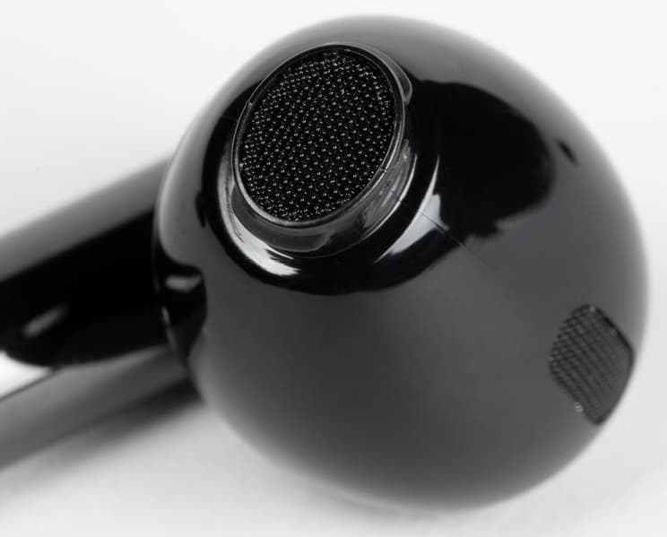Сверху на внешней части «ножки» — для режима «звуковой прозрачности» и активного шумоподавления. Очень вероятно, что там же расположено и компенсационное отверстие, служащее для сброса лишнего давления во время работы динамического драйвера.
