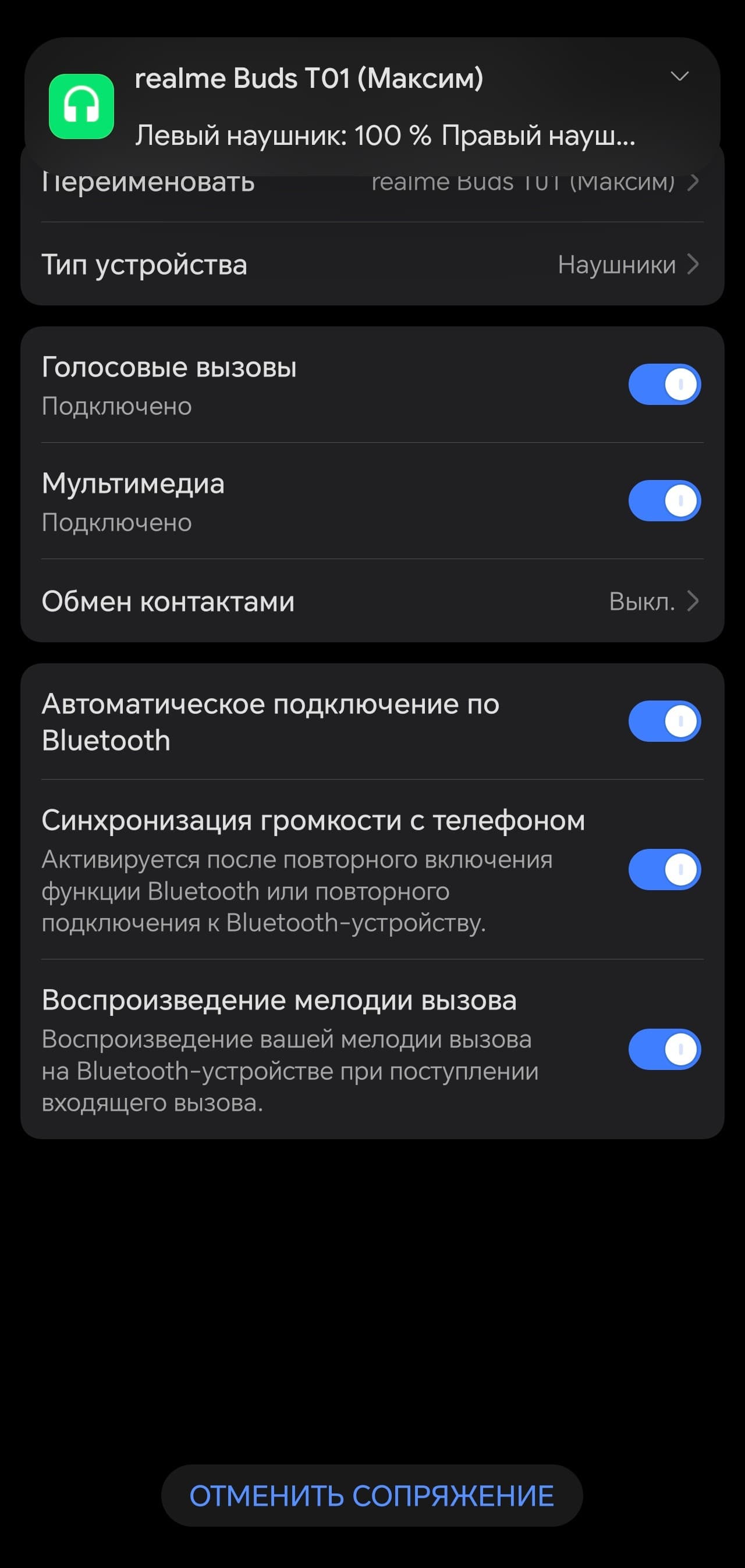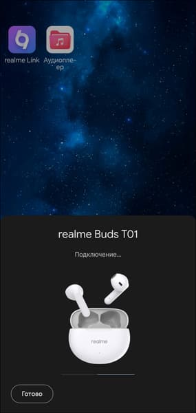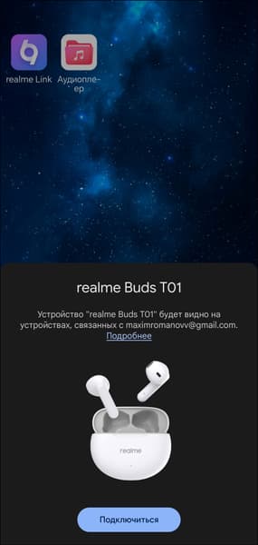 Realme Buds T01 поддерживает технологию Google Fast Pair, потому ее сопряжение с устройствами под управлением Android осуществляется максимально просто: открываем крышку кейса, через несколько секунд видим на экране приглашение осуществить подключение. Соглашаемся, ждем еще полминуты — готово. «Классические» варианты подключения, естественно, тоже работают.
