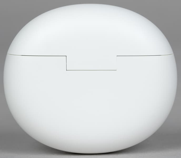 У нас на тестировании на этот раз оказалась бело-серая модель. Кейс выполнен из приятного на ощупь матового пластика, который не склонен покрываться пятнами от прикосновений. Ура, времена марких глянцевых белых кейсов потихоньку уходят в прошлое. А вот наушники сделаны глянцевыми — на них пятна появляются моментально. К счастью, они не очень заметны и легко удаляются.