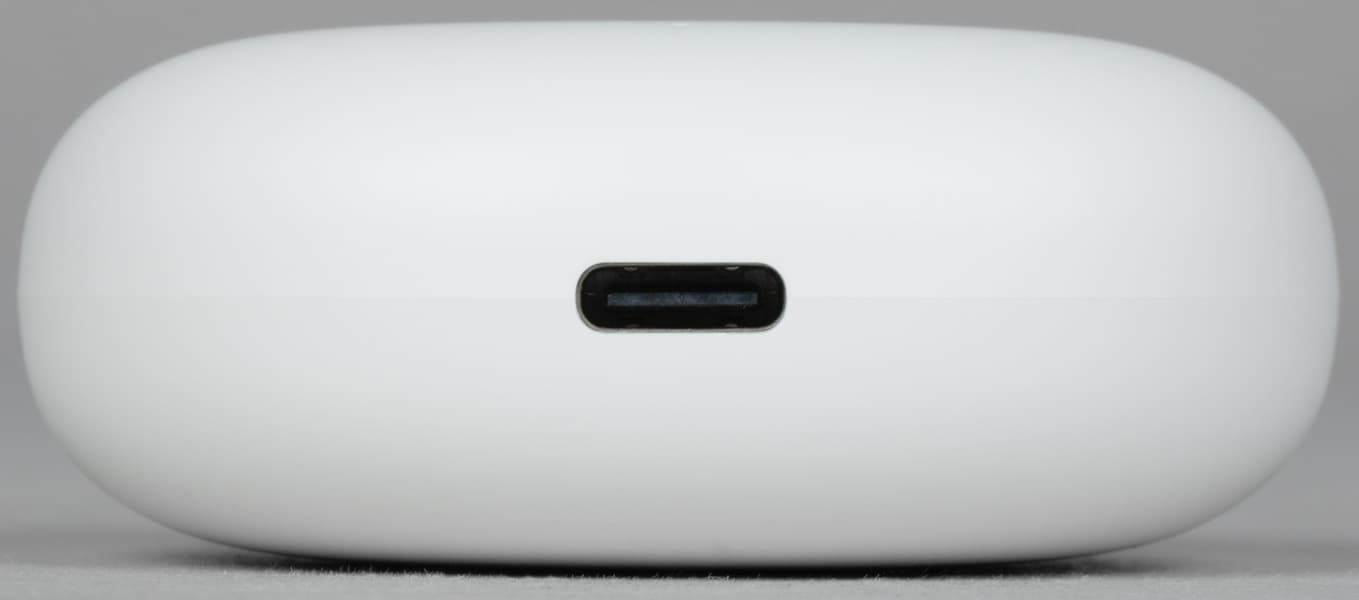 В нижней части корпуса размещен порт USB Type C для зарядки кейса. Было бы здорово увидеть где-нибудь в этой области кнопку активации Bluetooth-сопряжения, но ее нет — одновременное подключение к нескольким устройствам гарнитура не поддерживает, об этом мы еще поговорим.