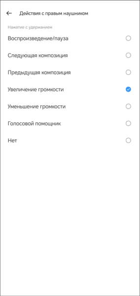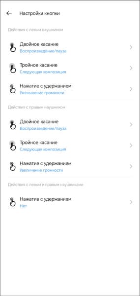 Всего поддерживаются три типа касания, на каждое можно «повесить» одно из шести действий, включая изменение громкости и вызов голосового ассистента.