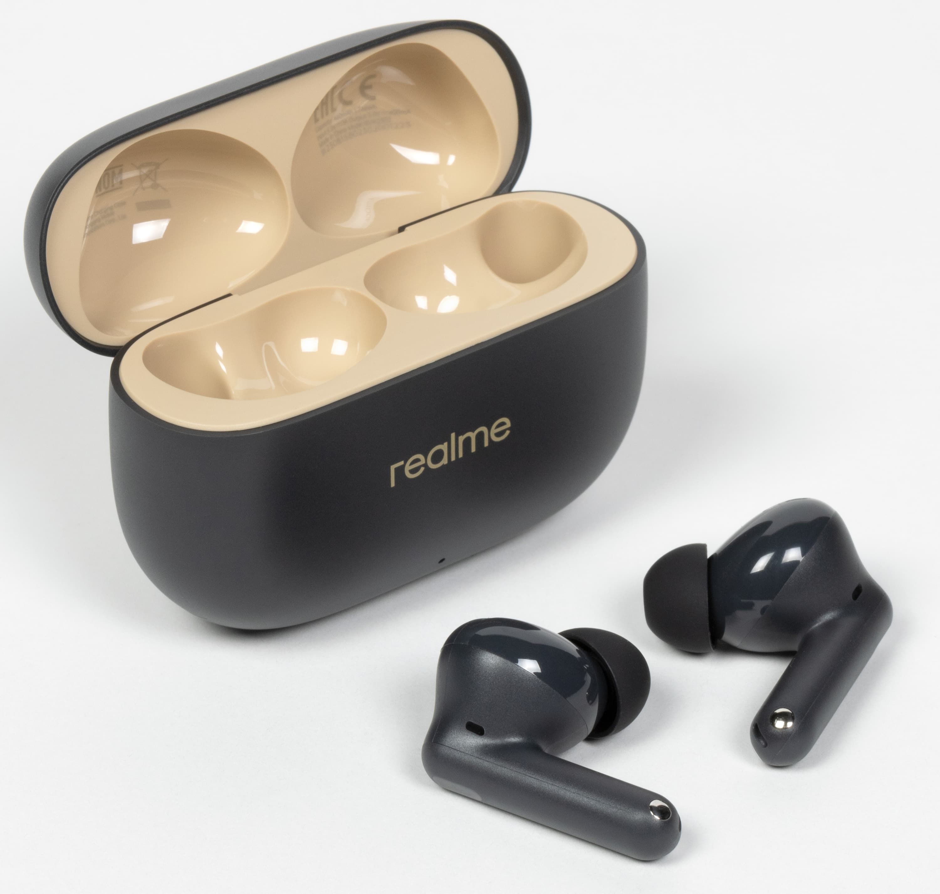 Для более плотной фиксации в кейсе служат углубления в крышке для округлой части наушников. Срабатывает это хорошо, «тест на погремушку» Realme Buds T300 проходит без проблем: даже если специально трясти кейс с наушниками возле уха, внутри не раздается ни звука.