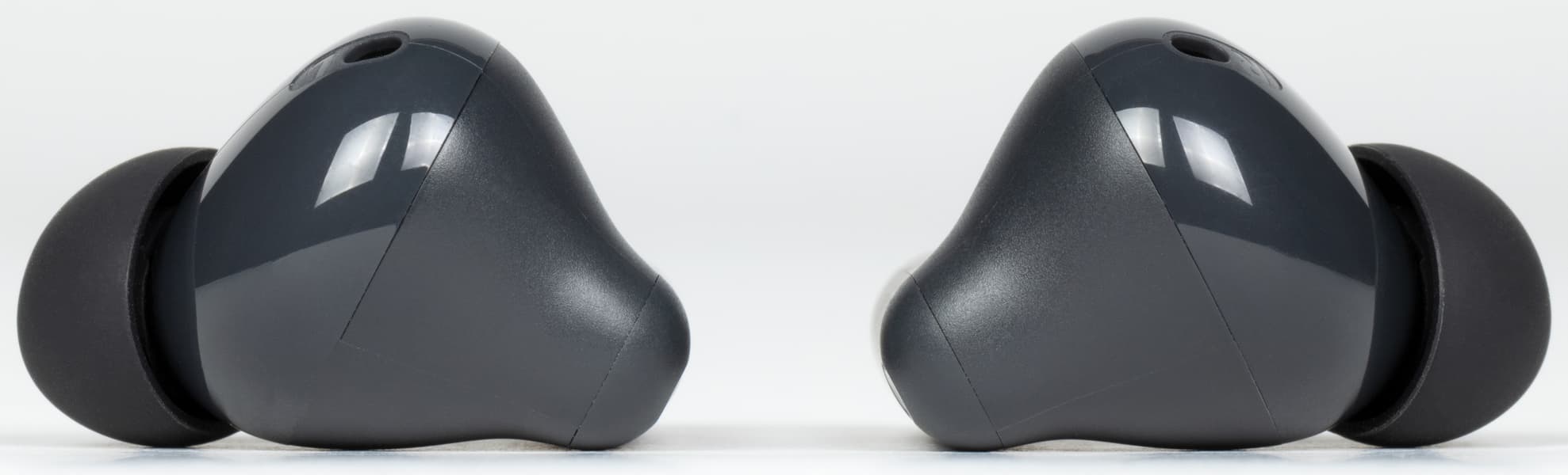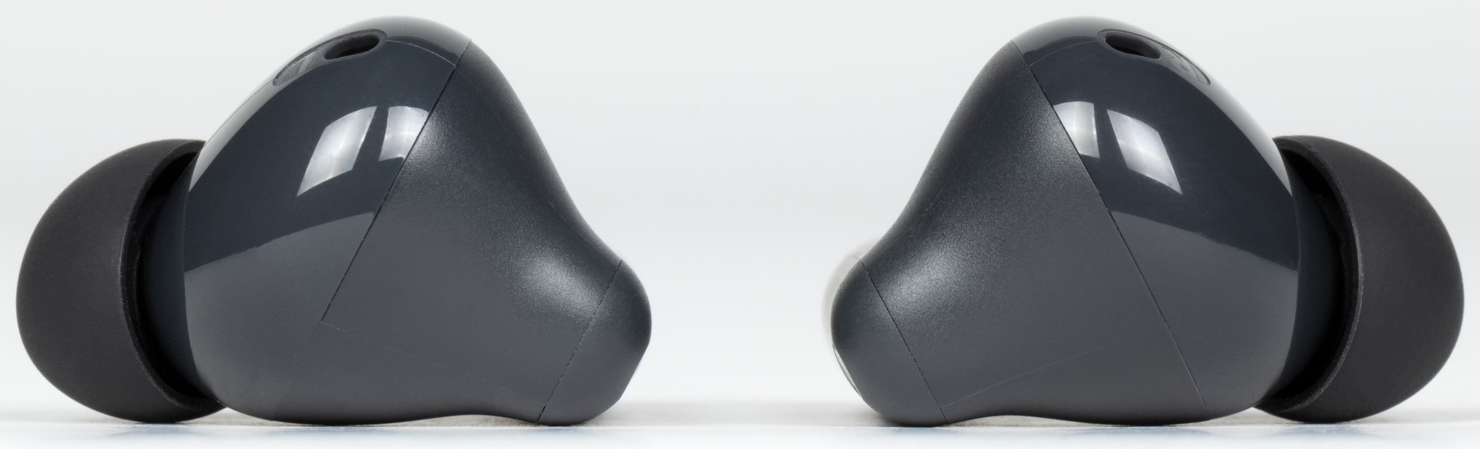Каплевидная форма внутренней части должна обеспечить опору на чашу ушной раковины, при этом каких-либо дополнительных выступов для более надежной посадки не предусмотрено — всё просто, но вполне эффективно.