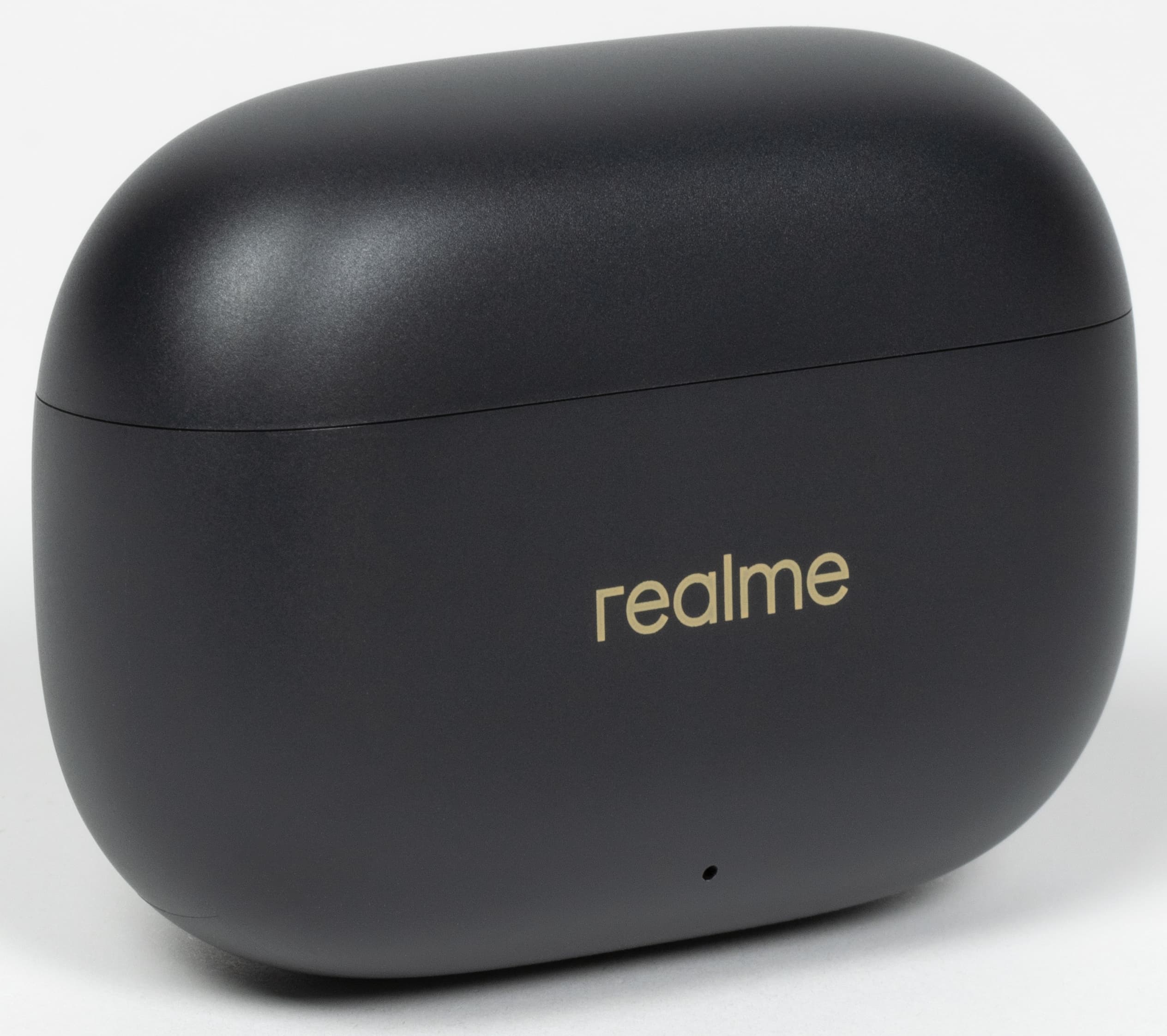 Форма кейсов серии Air ближе к овальной, у Realme Buds T300 — к прямоугольной. Поверхность у черно-желтой версии матовая, что делает ее устойчивой к появлению пятен от прикосновений. Передняя и задняя грани футляра плоские, размеры скромные — в карман он отлично помещается.